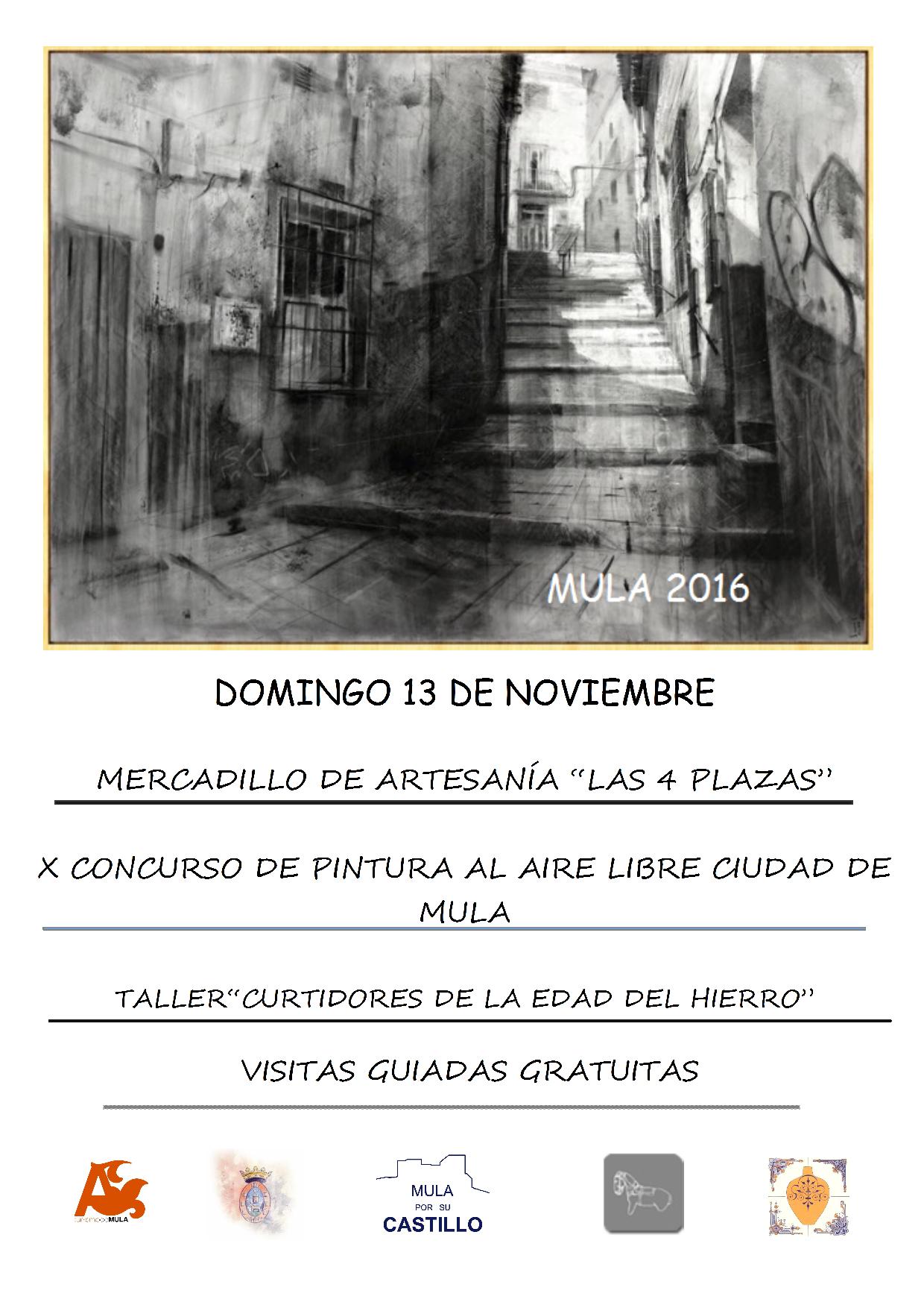 Este domingo también tendrá lugar el X PREMIO NACIONAL DE PINTURA AL AIRE LIBRE "CIUDAD DE MULA". La inscripción tendrá lugar el mismo día del concurso de 9 a 11 de la mañana en el CONVENTO DE SAN FRANCISCO.