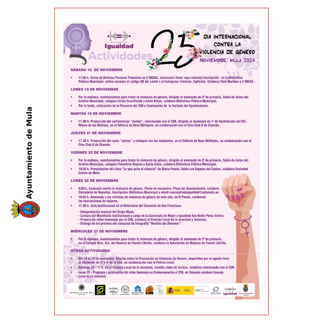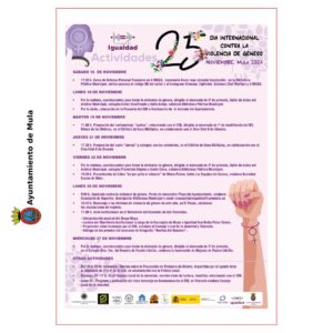 “La lucha contra la violencia de género es un compromiso social ineludible. Con esta programación buscamos generar conciencia, educar a las nuevas generaciones y apoyar a las víctimas desde el respeto y la empatía. Desde el Ayuntamiento de Mula reafirmamos nuestro compromiso por una sociedad más justa e igualitaria”, destacó Ana Belén Pérez.