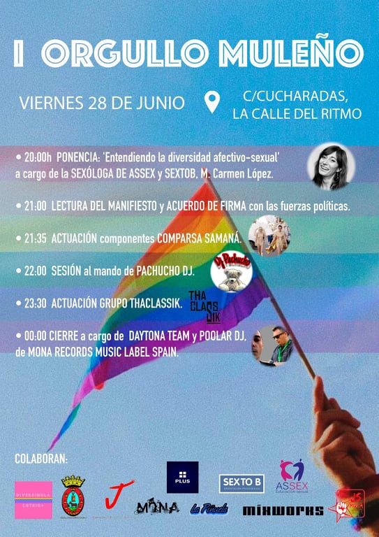 Con motivo de la celebración del Día del Orgullo LGTBIQ+ este viernes, 28 de Junio, cumpliéndose el cincuenta aniversario de las primeras revueltas de Stonewall, -germen, de lo que conocemos hoy en día como el Orgullo LGTBIQ+-. La asociación Diversimula LGTBIQ+, realizará un acto de presentación a las ocho de la tarde en la calle Cucharadas de la ciudad de Mula.