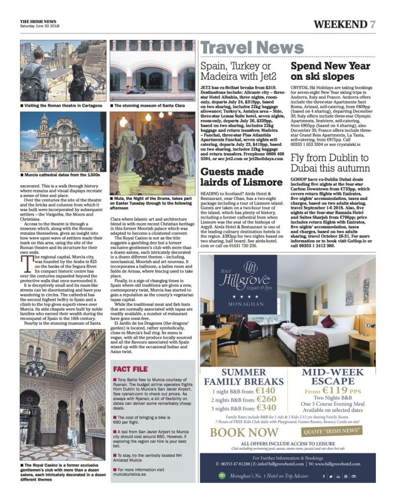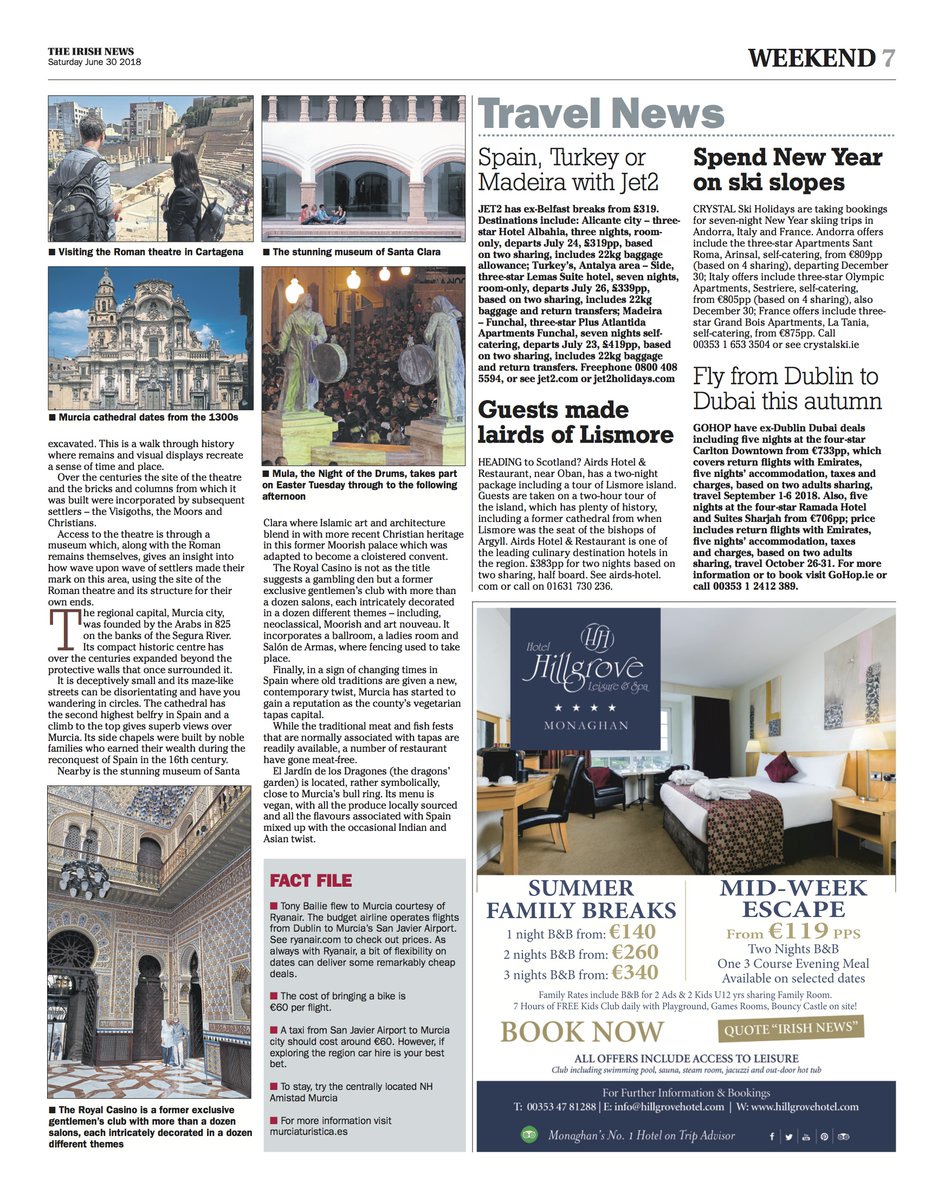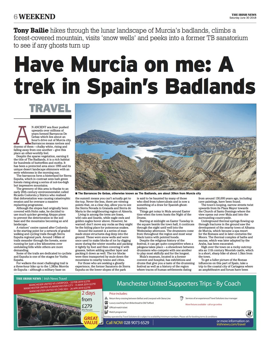 El pasado mes de junio, el periódico irlandés Irish News publico un especial sobre la Región de Murcia, en el que aparece Mula y La Noche de Los Tambores.