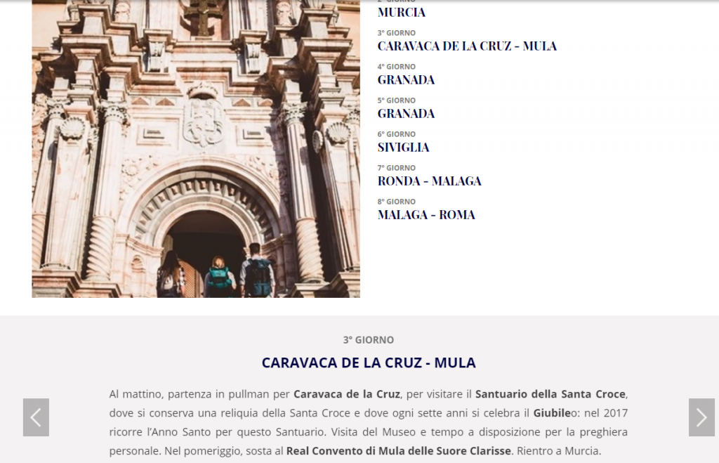 Más información en: http://www.operaromanapellegrinaggi.org/it/pellegrinaggi/itinerari-religioso-culturali/spagna-del-sud-e-murcia