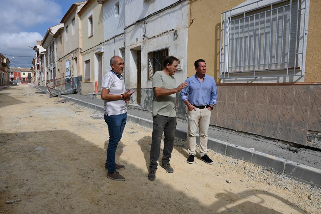 Acompañados por León Saavedra, técnico del Ayuntamiento de Mula, el alcalde y el concejal han visitado los trabajos que se están realizando en Fuente Librilla, que suponen una renovación completa de las infraestructuras de la pedanía muleña. En esta línea, las obras incluyen la instalación de una nueva red de agua potable y la sustitución del colector de aguar residuales, así como la construcción de un nuevo pavimento de aglomerado asfáltico y de aceras totalmente accesibles para las personas con movilidad reducida. De igual manera, se está llevando a cabo la creación de nuevas plazas de aparcamiento, la instalación de semáforos y señalización urbana, la renovación del mobiliario y jardinería urbana.