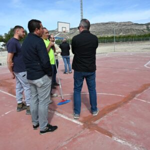 El alcalde Juan Jesús Moreno visita las pistas polideportivas de Yéchar y de La Puebla de Mula, que ya han comenzado sus proyectos de mejora, junto al concejal de Obras y Servicios, Vicente López, y a los Servicios Técnicos.