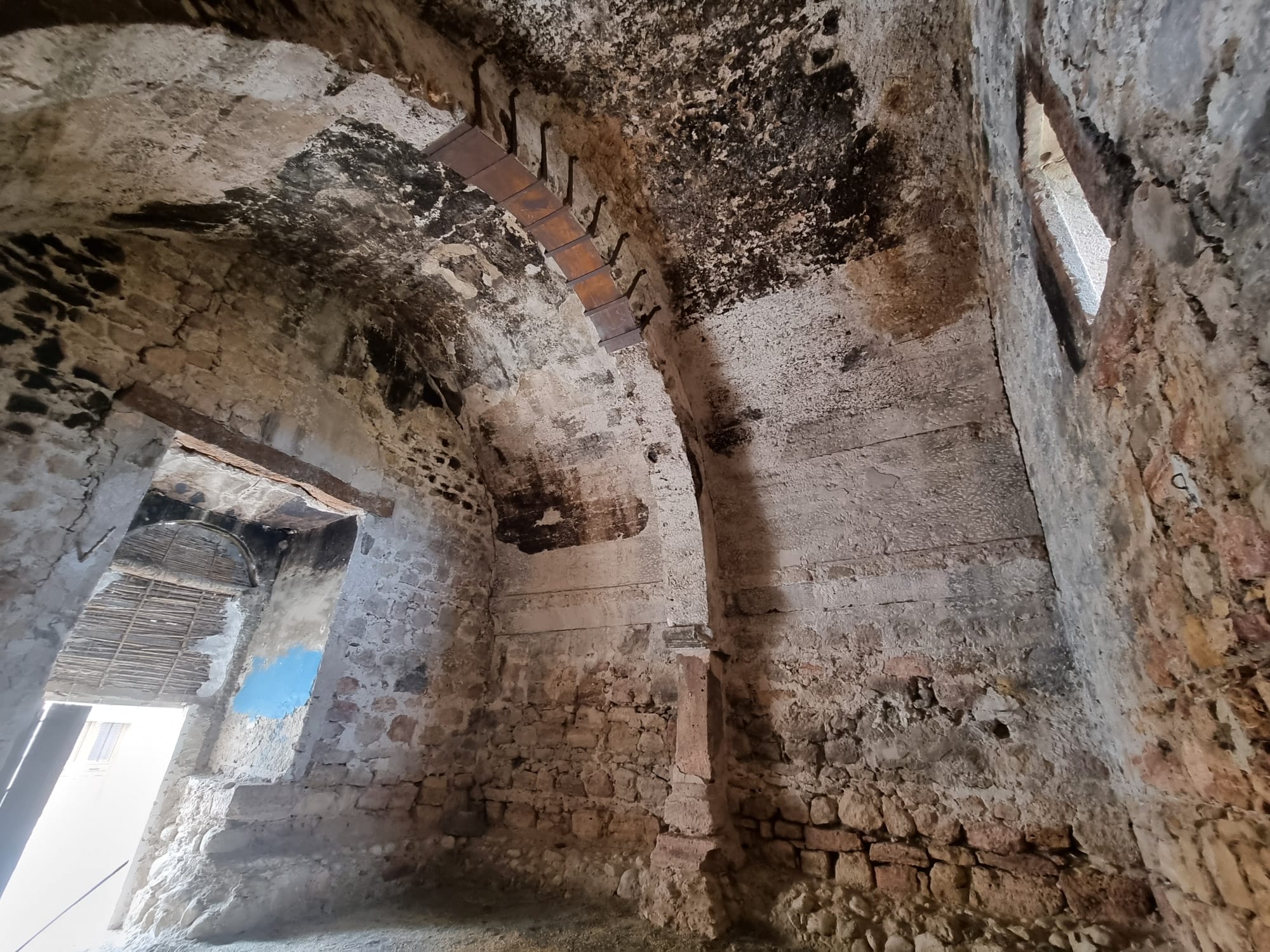 Junto a la limpieza, se ha reparado la puerta de madera, que da acceso al monumento y se han eliminado las plantas de la terraza y el canal de desagüe de la misma que se encontraba obstruido.