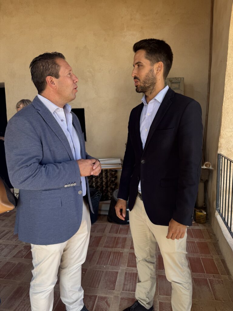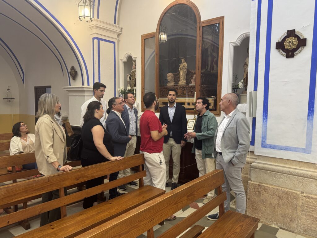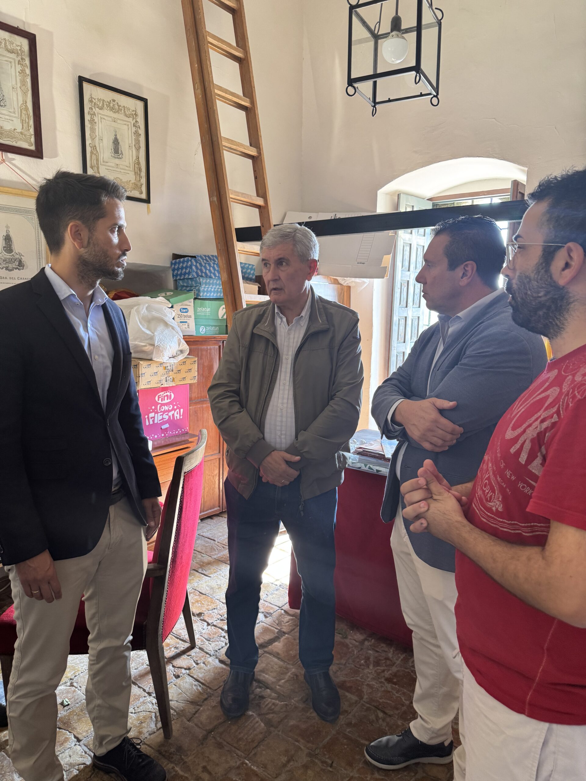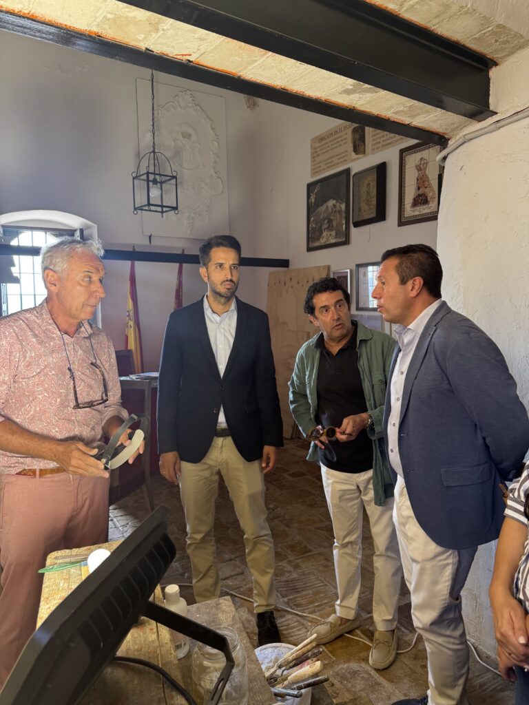 Juan Jesús Moreno, Alcalde de Mula, y Patricio Sánchez, Director General de Patrimonio Cultural, han visitado la Ermita de Nuestra Señora del Carmen de Mula para conocer el desarrollo de los trabajos de restauración de la pintura mural encontrada en la zona más antigua de la iglesia, junto a los pies de la torre campanario, la cual podría ser anterior a los siglos XVII Y XVIII.