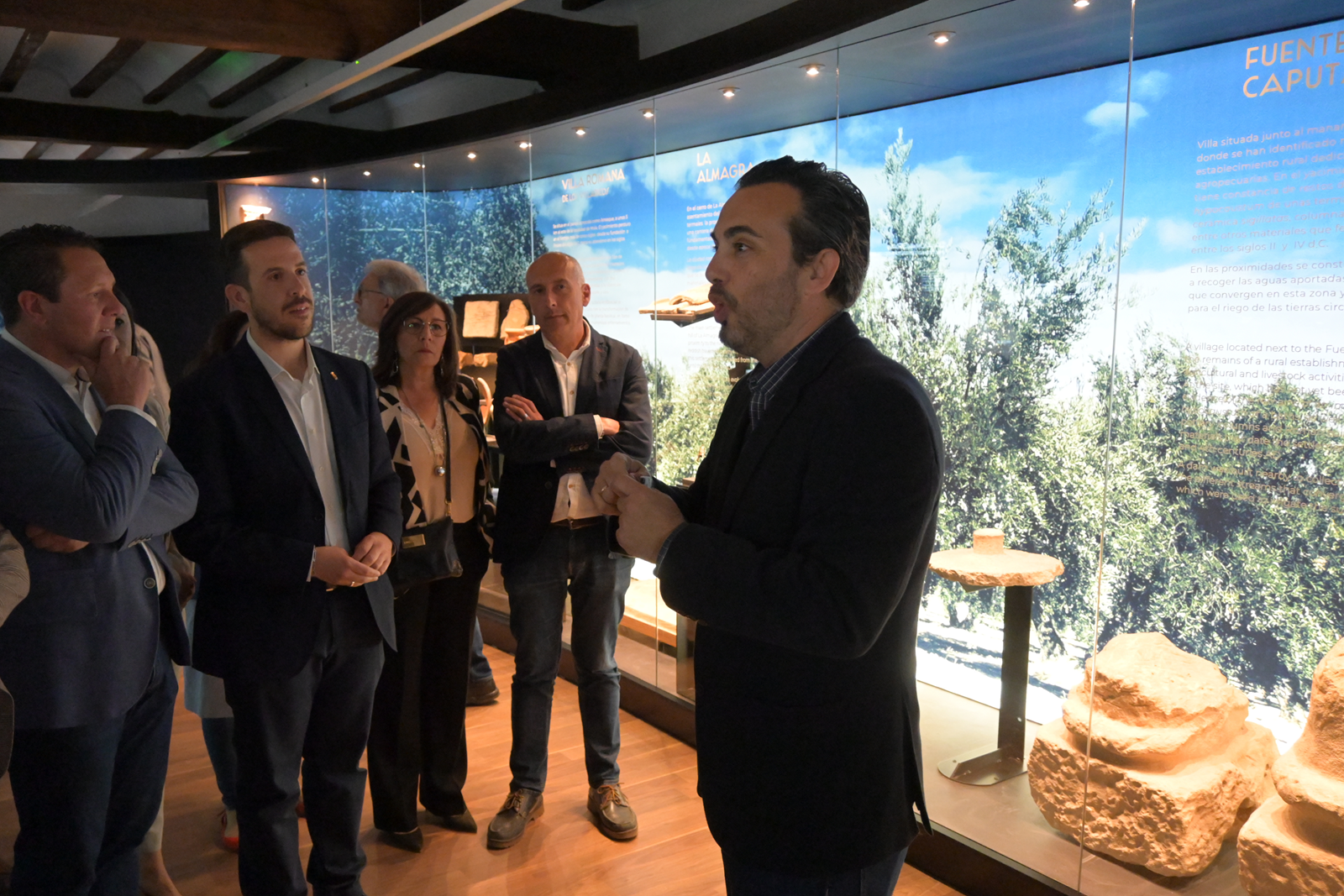 El alcalde de Mula, Juan Jesús Moreno, ha inaugurado la exposición La romanización en Mula, una muestra cronológica desde la romanización hasta la época visigoda, momento al que pertenece el sarcófago que preside la muestra y que fue hallado en la villa romana de Los Villaricos en 2021.