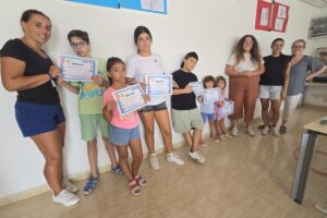 Hoy ha tenido lugar el acto de clausura de las Escuelas de Verano y el Campus Deportivo, organizados por el Ayuntamiento de Mula en el marco del Plan Corresponsables. En el acto de entrega de diplomas han participado la concejala de Igualdad, Ana Belén Pérez, el concejal de Deportes, Vicente López, y la concejala de Servicios Sociales, Antonia Gabarrón.
