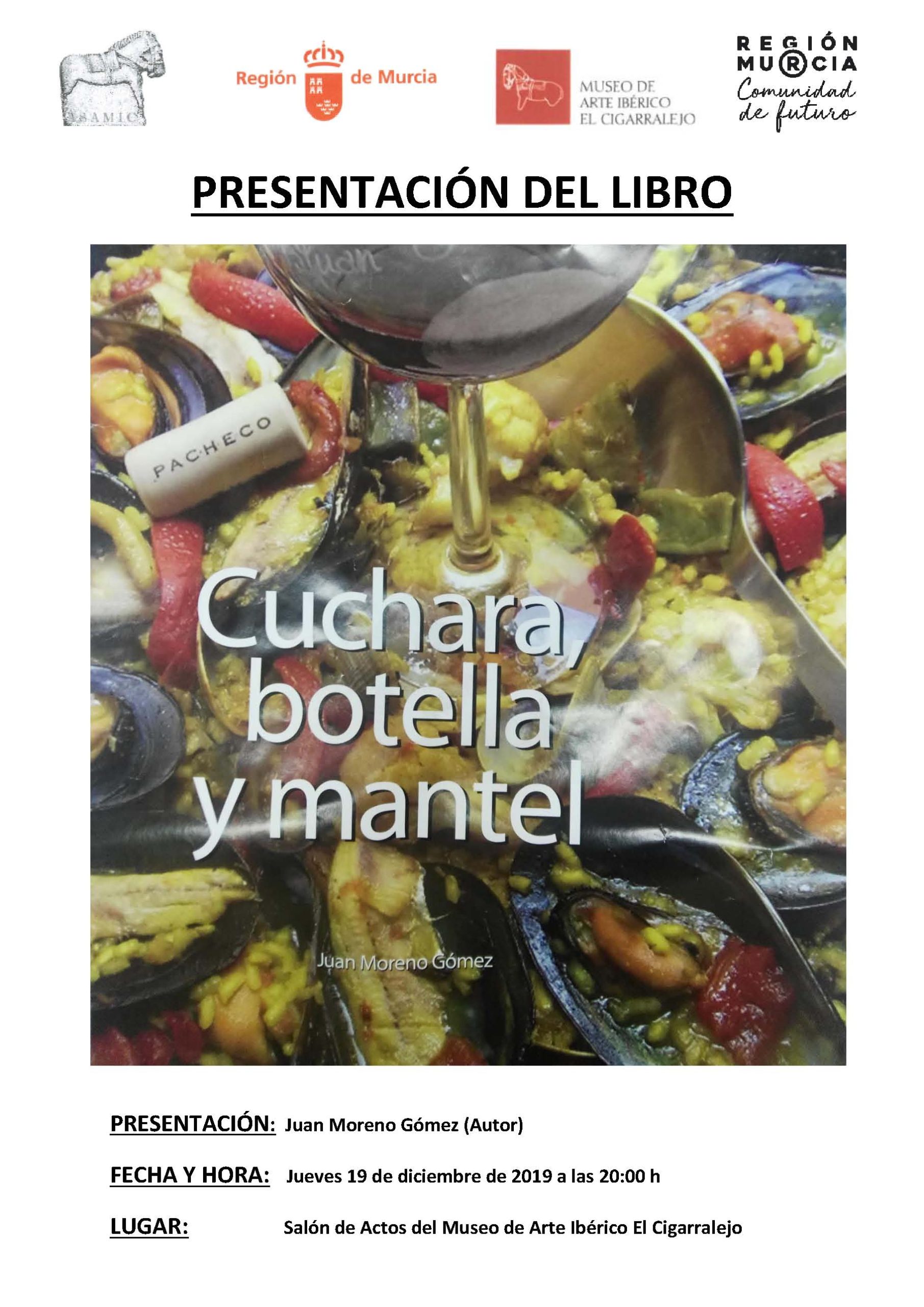 View Larger Image Presentación del libro: «Cuchara, botella y mantel» de Juan Moreno Gómez – 19 de diciembre Comparte esto: Comparte en Facebook (Se abre en una ventana nueva) Facebook Compartir en X (Se abre en una ventana nueva) X Compartir en Telegram (Se abre en una ventana nueva) Telegram Compartir en WhatsApp (Se abre en una ventana nueva) WhatsApp Imprimir (Se abre en una ventana nueva) Imprimir Rosario Martínez2019-12-17T09:25:23+01:00martes, 17 diciembre 2019|museo de arte ibérico el cigarralejo|