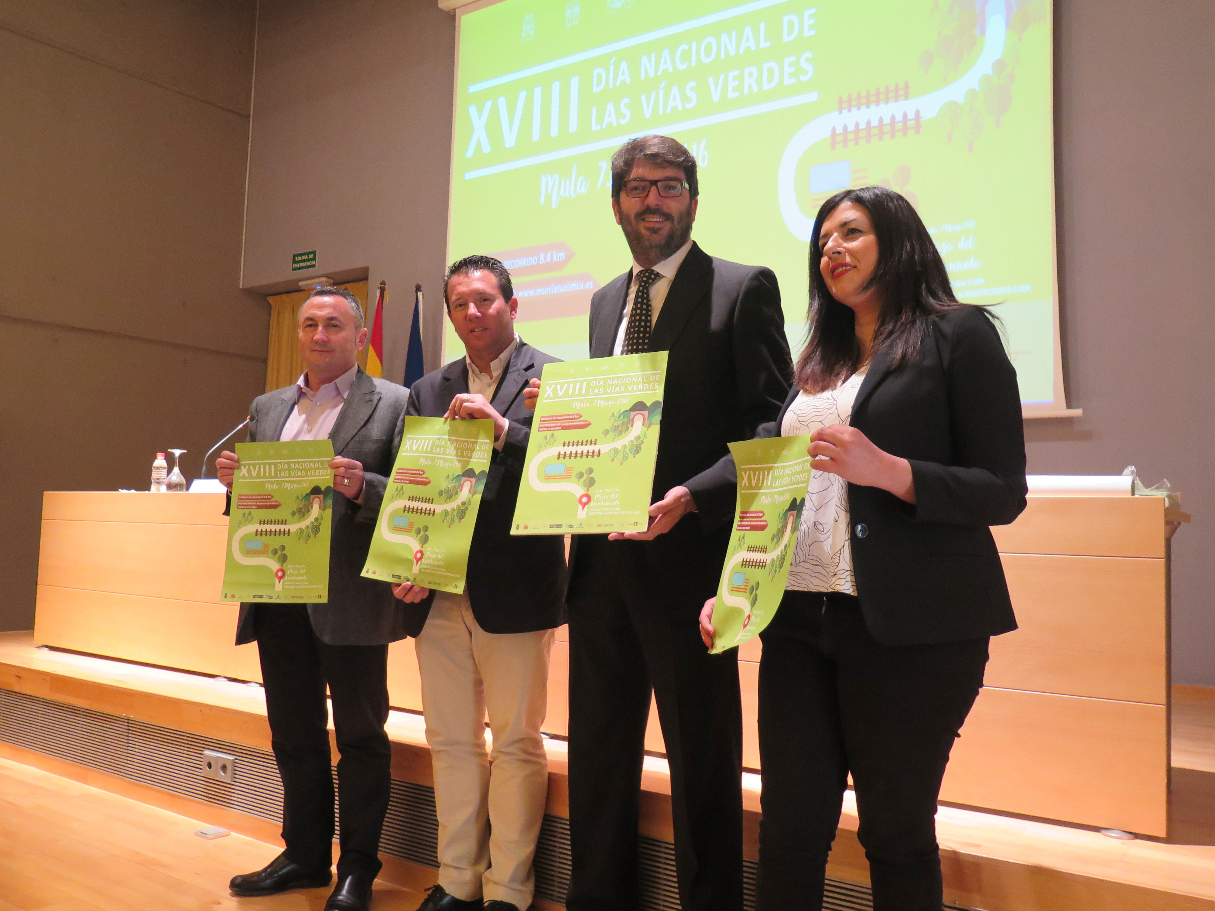 En la mañana de hoy, ha tenido lugar el acto de presentación del Día Nacional de las Vías Verdes, que, este año, se celebra en Mula, el próximo sábado, 7 de mayo. El acto, celebrado en el Centro de Cualificación Turística, en Murcia, ha contado con la presencia del Director del Instituto de Turismo de la Región de Murcia, Manuel Fernández-Delgado: el Alcalde-Presidente del Excmo. Ayuntamiento de Mula, Juan Jesús Moreno García, el Gerente del Consorcio de la Vía Verde del Noroste, Juan Soria; y la Concejala de Turismo del Ayuntamiento de Mula, Francisca Imbernón.