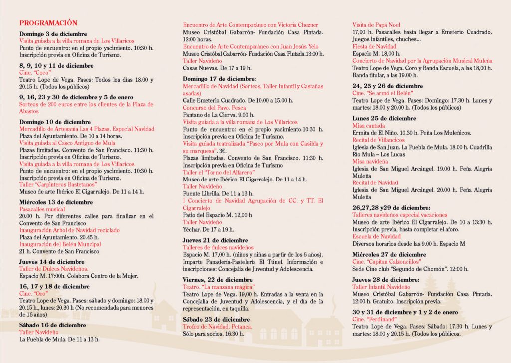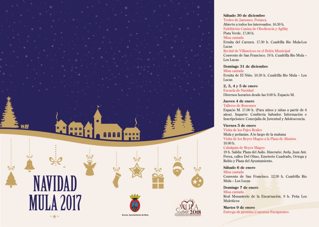 El Excmo. Ayuntamiento de Mula informa que mañana martes 5 de diciembre a las 21 horas en el local de Acopadis en Gran Vía tendrá lugar la presentación de la programación de Navidad 2017.