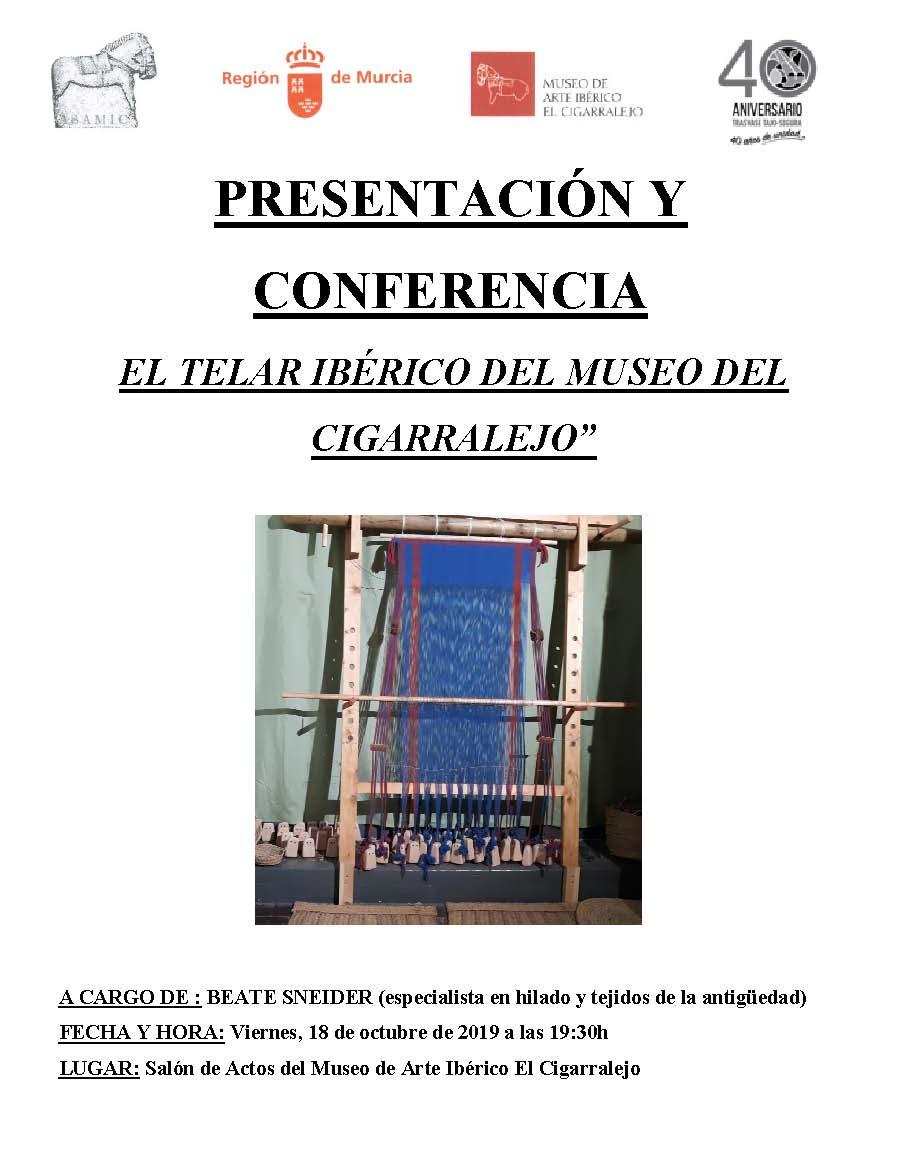 View Larger Image Presentación y conferencia: » El telar ibérico del Museo del Cigarralejo» – 18 de octubre Comparte esto: Comparte en Facebook (Se abre en una ventana nueva) Facebook Compartir en X (Se abre en una ventana nueva) X Compartir en Telegram (Se abre en una ventana nueva) Telegram Compartir en WhatsApp (Se abre en una ventana nueva) WhatsApp Imprimir (Se abre en una ventana nueva) Imprimir Rosario Martínez2021-05-12T20:11:06+02:00lunes, 14 octubre 2019|museo de arte ibérico el cigarralejo|