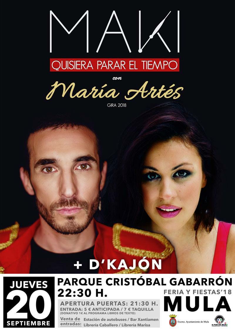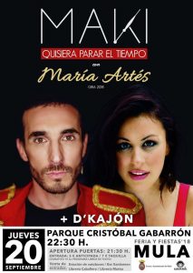 - 23:30 h. Concierto de MAKI y MARÍA ARTÉS, en el parque Cristóbal Gabarrón. Tras la actuación, Dj Jaro.