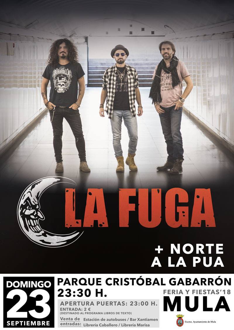 - 23:30 h. Actuaciones de los grupos LA FUGA, NORTE, y A LA PÚA. Parque Cristóbal Gabarrón. A continuación, Rock Metal JB.