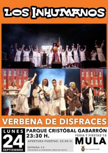 - 23:30 h. En el Parque Cristóbal Gabarrón, Gran Verbena de Disfraces, con las actuación de INHUMANOS en el Parque Cristóbal Gabarrón.