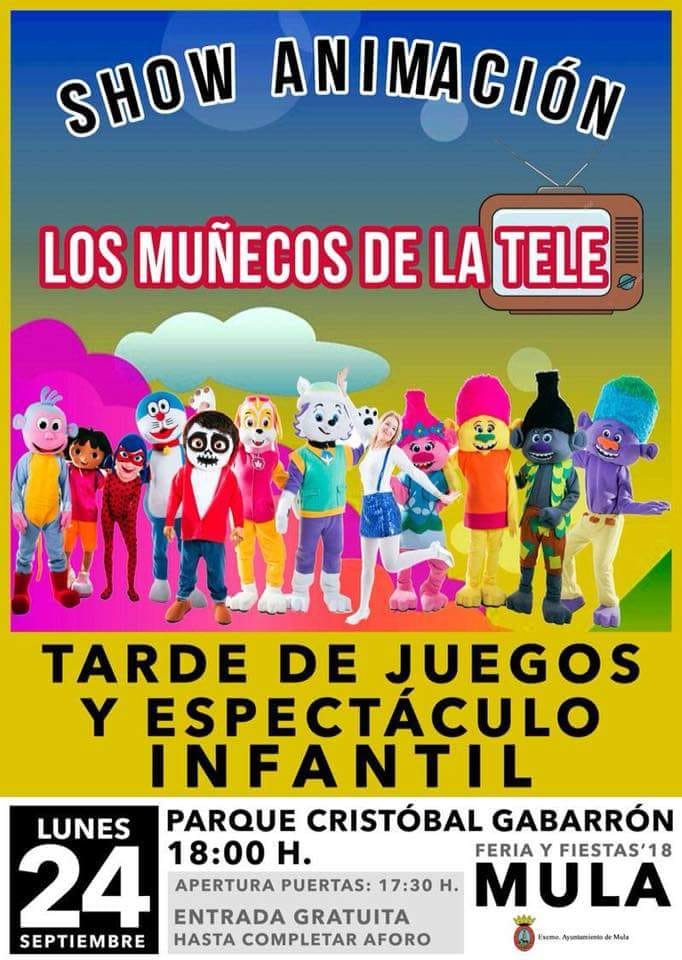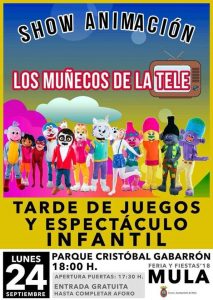 - 19:00 h. En el Parque Cristóbal Gabarrón, Verbena Infantil de Disfraces con LOS MUÑECOS DE LA TELE.