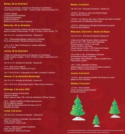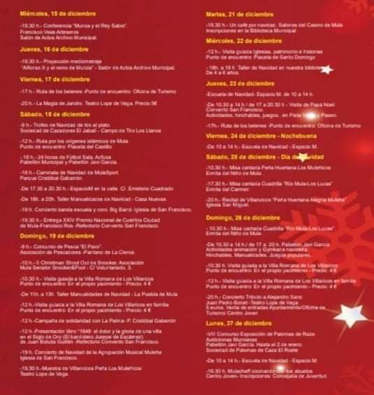Un extenso programa lleno de propuestas y actividades para todos los vecinos de Mula y sus pedanías para disfrutar la magia de la Navidad
