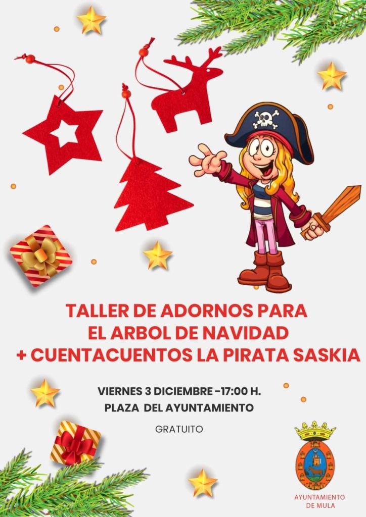 Así, este viernes día 3 tiene lugar en la plaza del Ayuntamiento a partir de las 17.00 horas la celebración del cuentacuentos ‘La pirata Saskia’- actividad enmarcada dentro de las actividades del 25N- que contará con un taller de adornos de árbol de Navidad y el encendido del Árbol de la plaza. Posteriormente se inaugurará el Belén Municipal en el Convento de San Francisco.