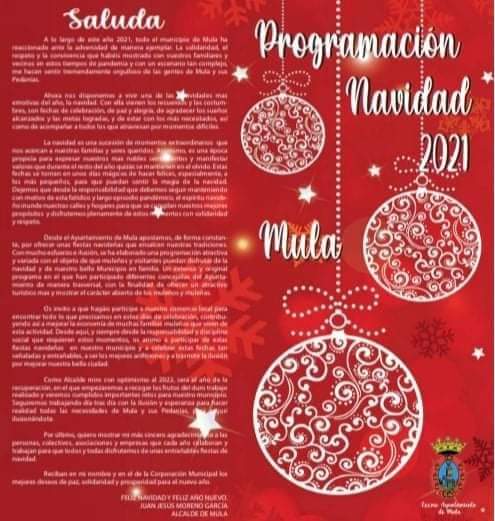 El Ayuntamiento de Mula presenta la Programación Navideña 2021/2022 para Mula y pedanías. Un sinfín de propuestas dirigidas a niños, jóvenes y mayores para disfrutar de una Navidad Mágica.