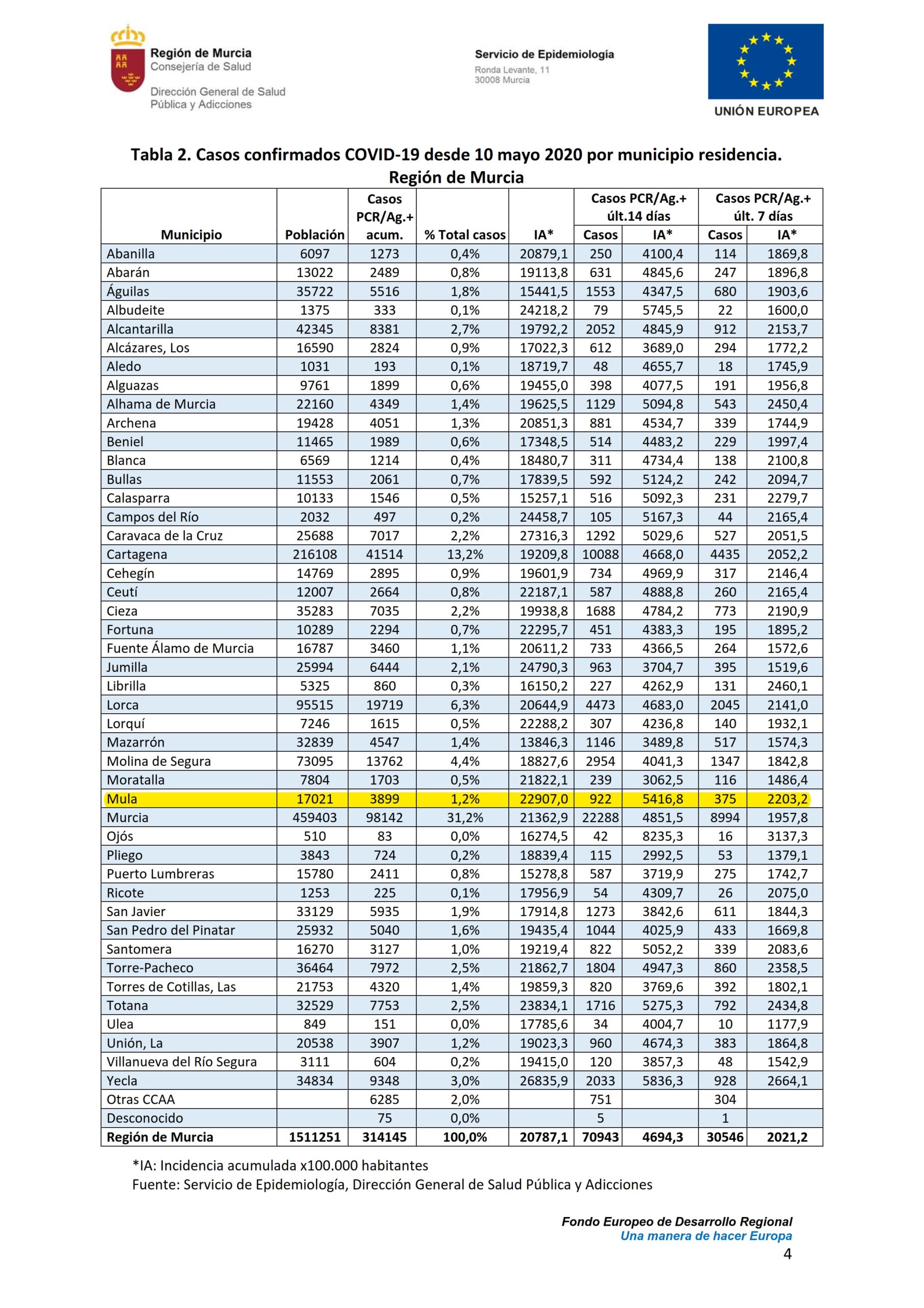 Enlace al Centro de datos COVID-19: https://www.datoscovid.es/pages/murcia#