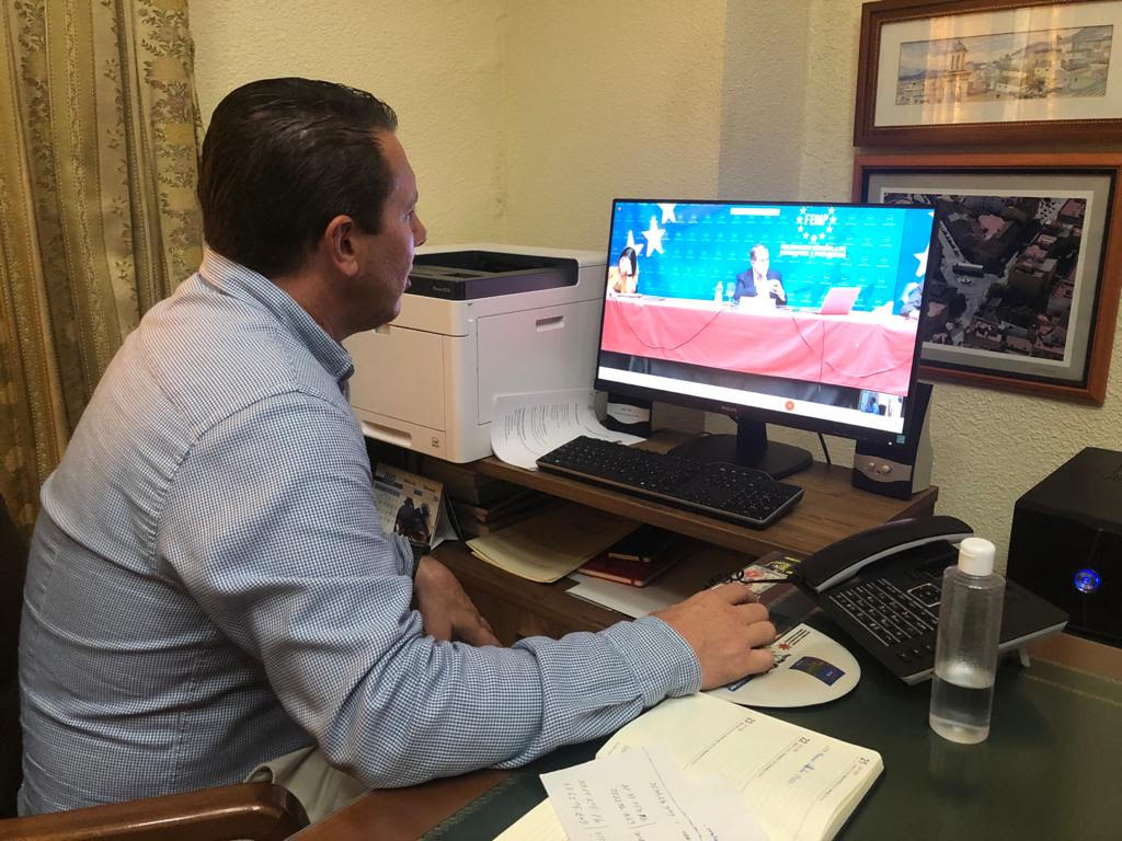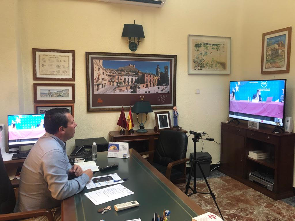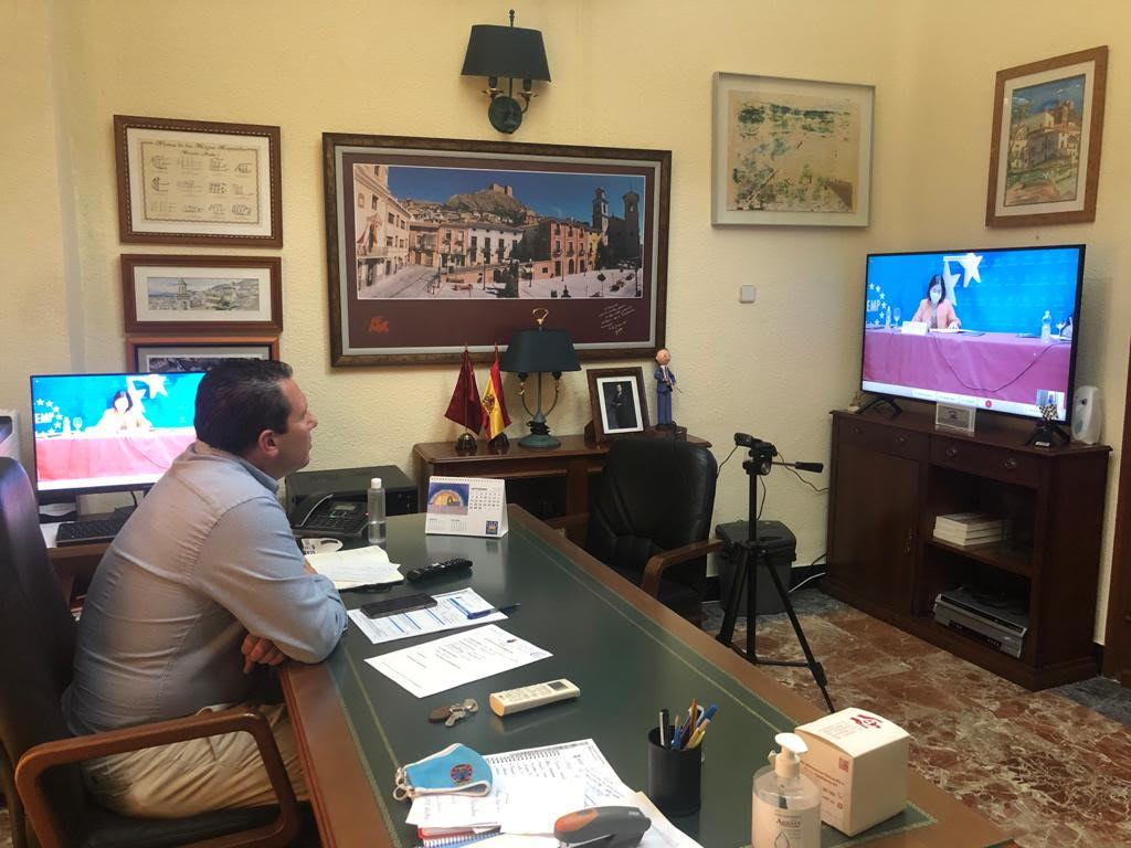 El alcalde de Mula, Juan Jesús Moreno, en calidad de vicepresidente de la Comisión de Salud Pública de la Federación Española de Municipios (FEMP) ha participado este miércoles en una reunión informativa telemática sobre la situación actual de la pandemia en la que también estaban presentes el Ministro de Sanidad, Salvador Illa, y la Ministra de Política Territorial y Función Pública, Carolina Darias.