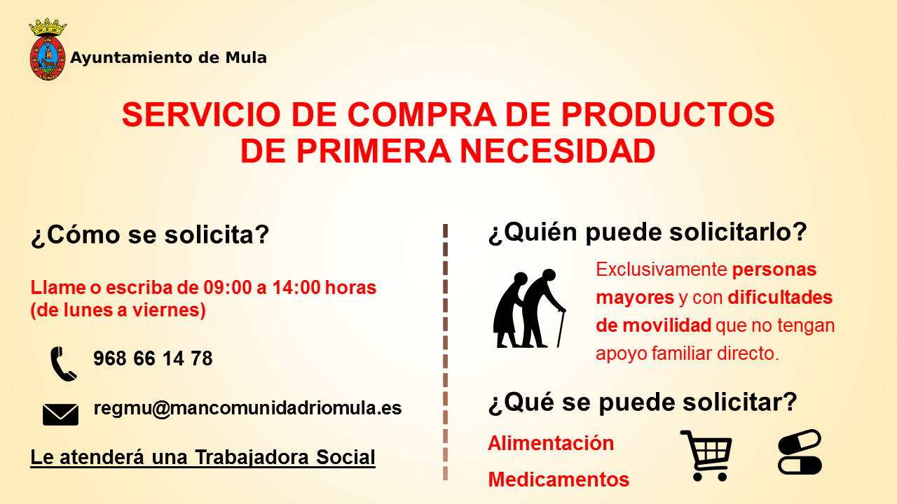 Servicio para solicitar alimentos o medicamentos disponible para personas mayores y con dificultades de movilidad que no tengan apoyo familiar directo.