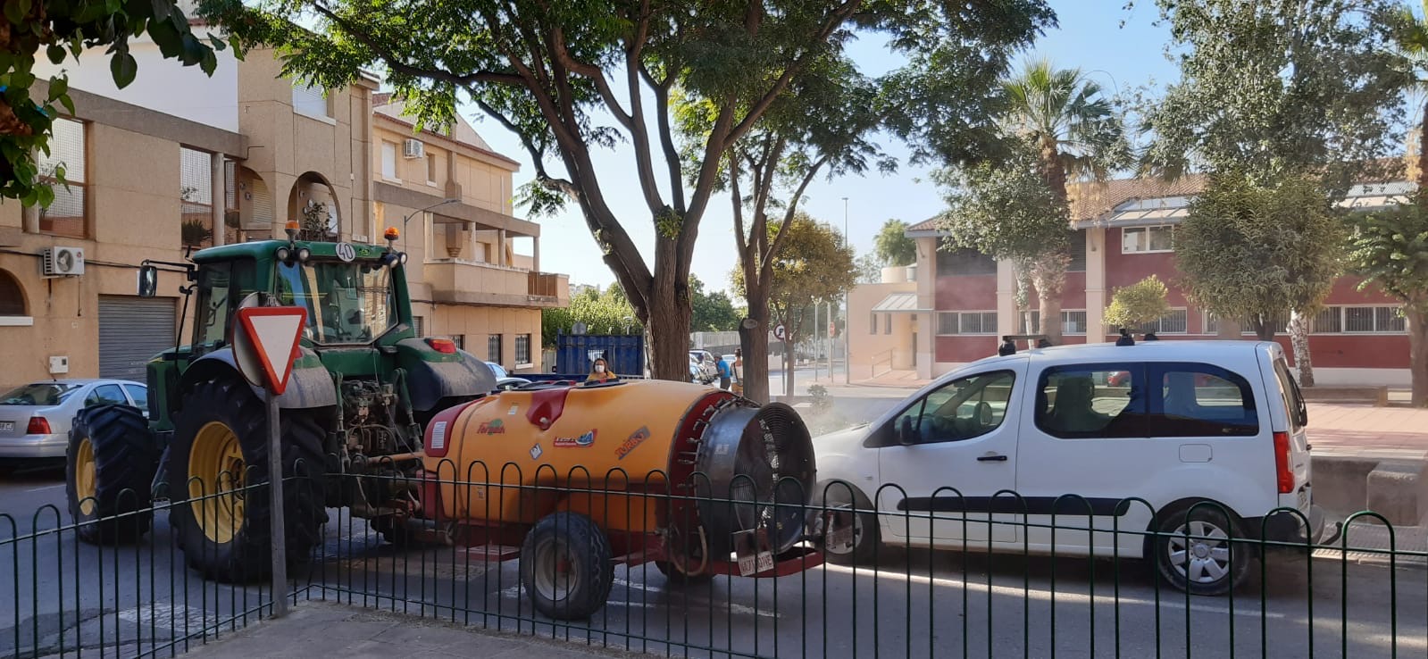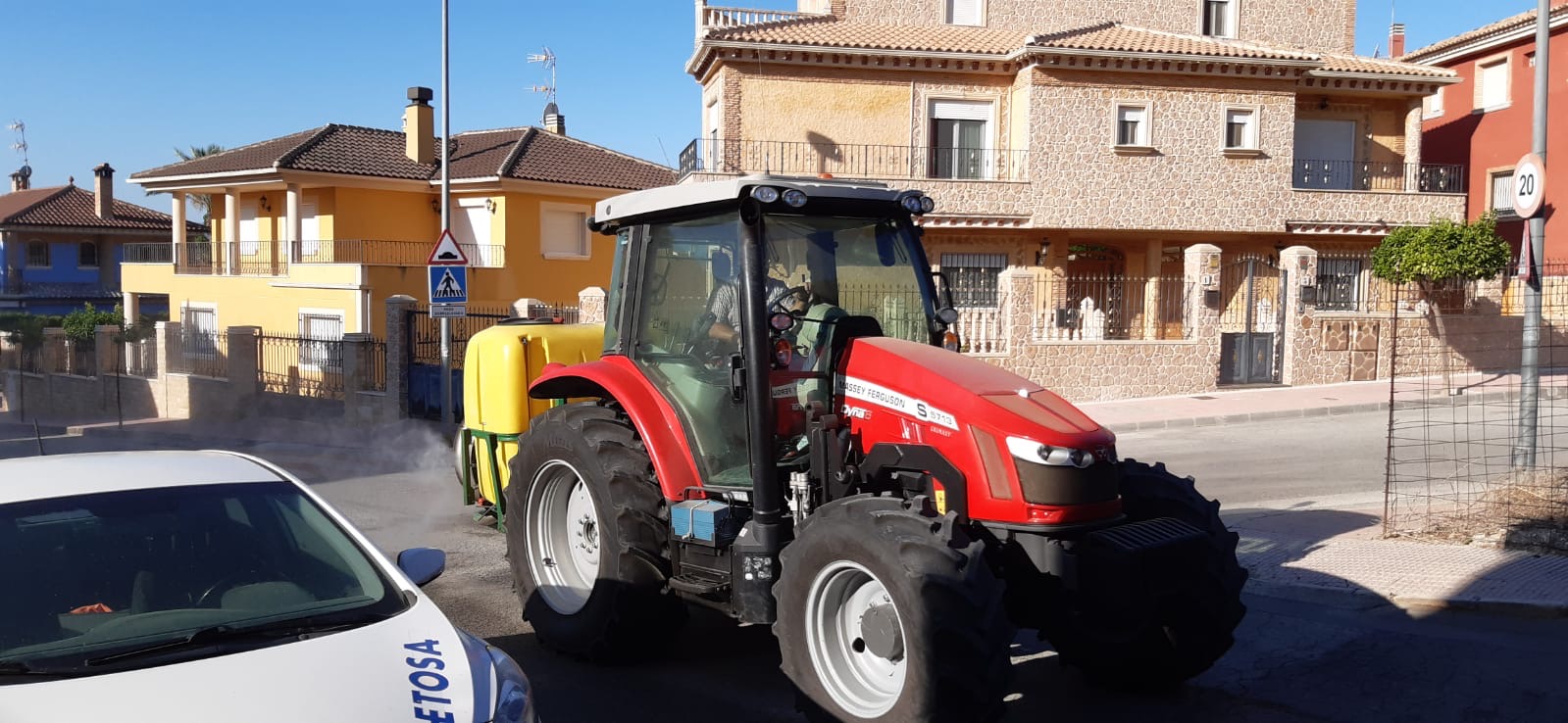 Para ello se ha contado con la colaboración y el trabajo de los agricultores del Mula y Pedanías, que a través de sus tractores y cubas han procedido a llevar a cabo la desinfección de estos espacios.