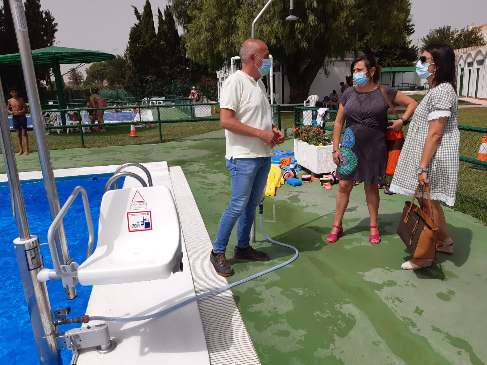 Se ha adaptado uno de los aseos, se ha instalado una puerta para acceder a la zona de piscinas y se ha adaptado la silla de acceso al agua para su uso en la piscina grande y la mediana