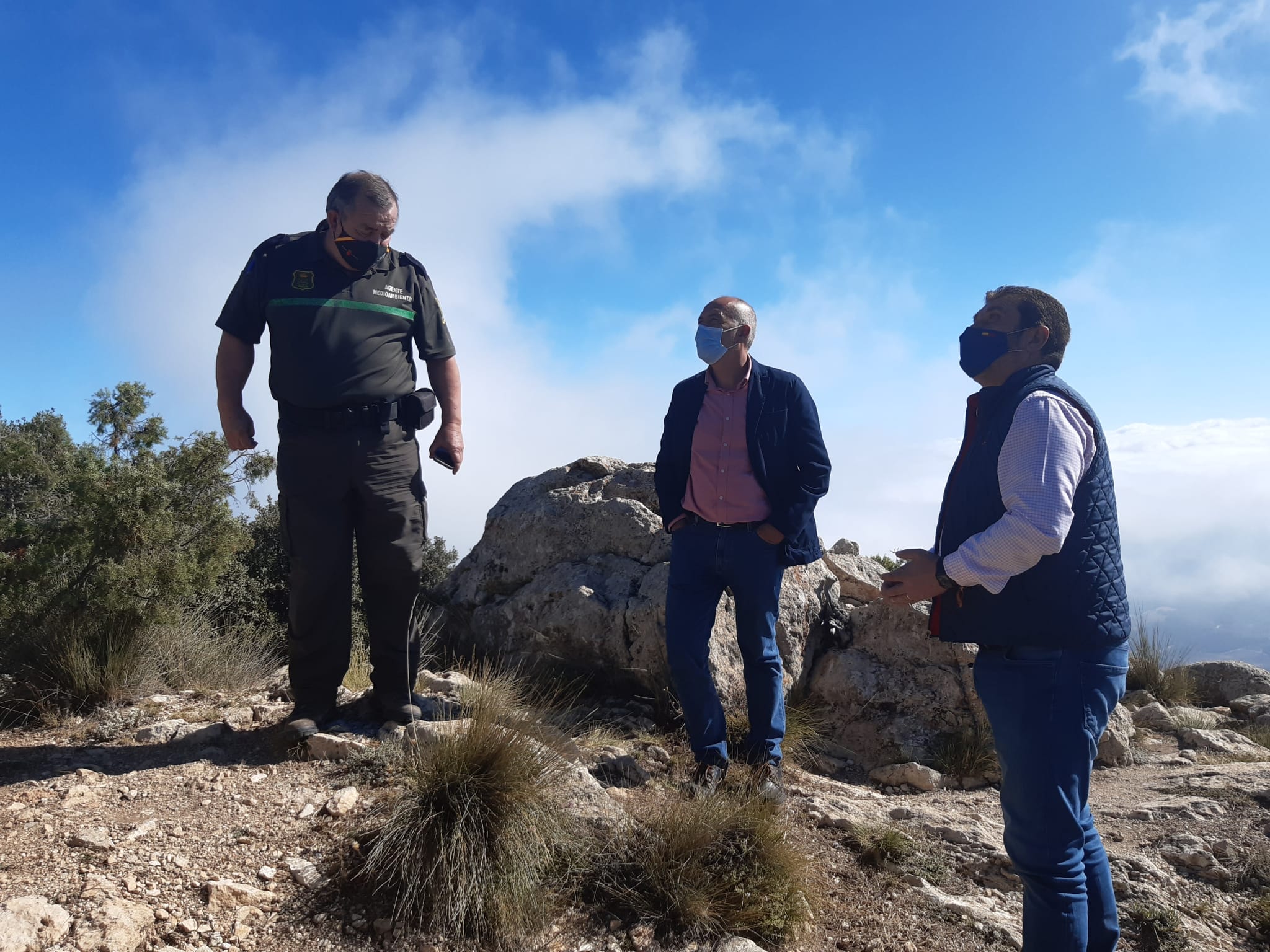 El concejal de Servicios Municipales, Vicente López, junto al jefe de los Agentes Medioambientales en la Comarca del Río Mula, Eusebio Navarro, han acompañado hoy al director general del Medio Natural, Fulgencio Perona, en la visita a las obras de mejora en el camino de acceso a la garita forestal de La Selva que permitirán mejorar la accesibilidad a los usuarios para llevar a cabo labores de gestión forestal y de prevención y lucha contra incendios.