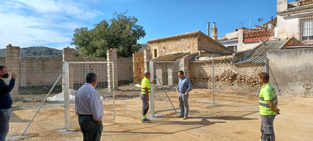 El alcalde de Mula, Juan Jesús Moreno, junto al concejal de Servicios Municipales, Vicente López, han visitado el nuevo aparcamiento para vehículos en la pedanía muleña de La Puebla.