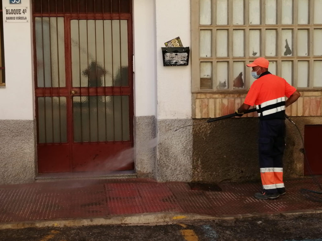 En estos momentos se mantienen cerrados los parques y jardines lo que facilita que las labores de desinfección se puedan desarrollar, en mayor medida, en aquellos espacios más frecuentados por la población y calles del municipio y las pedanías.