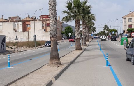 Para garantizar esa seguridad se ha repintado la señalización de suelo de la zona habilitada para peatones en la vía y se han instalado unos hitos a lo largo de todo el recorrido desde la redonda de la palmera hasta el skatepark. Además, se han añadido resaltos a lo largo de la avenida para evitar exceso de velocidad en los vehículos que comparten la vía.