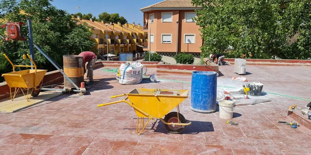 Se han reformado las cubiertas, ya que ocasionaban problemas con la lluvia, se han eliminado las placas de amianto y se ha renovado por completo la terraza. En la parte interior del edificio se ha realizado un saneamiento de los paramentos; así como la construcción de una puerta automática que permite conectar los espacios destinados a los talleres de carpintería y carpintería metálica. Esta última implementación permite empezar a tramitar la homologación de la sala para poner en marcha futuras escuelas taller.