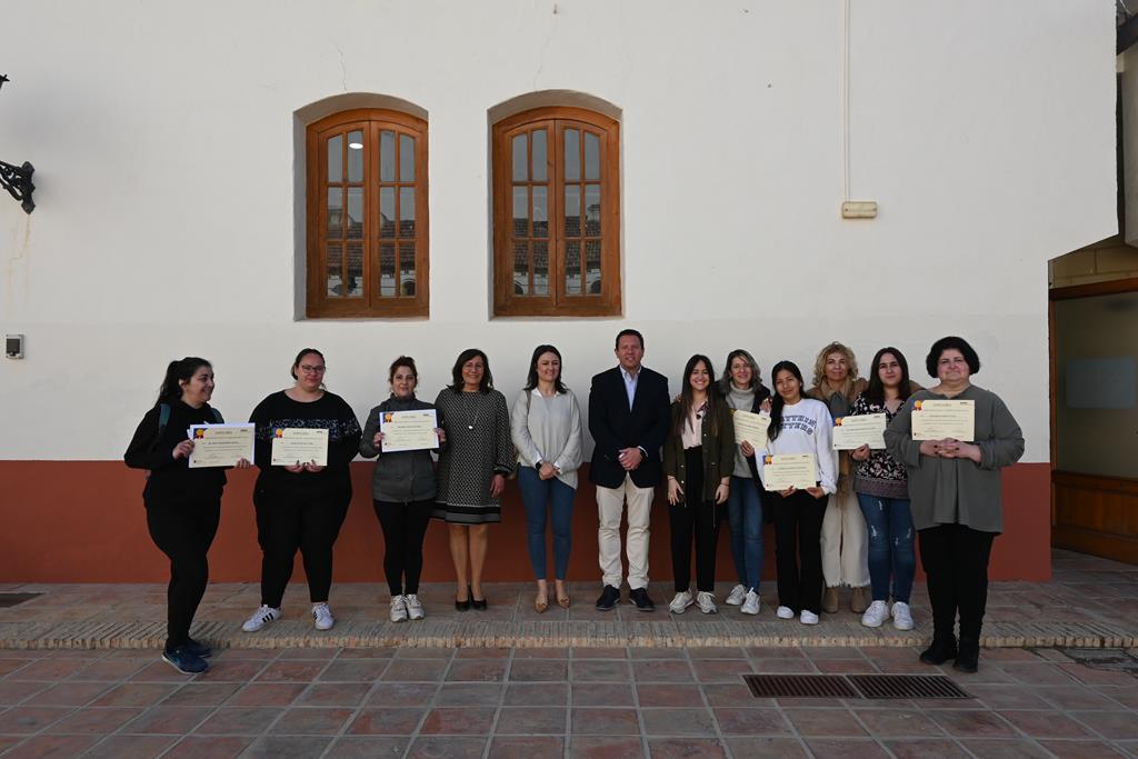 La entrega de diplomas estuvo presidida por el alcalde de Mula, Juan Jesús Moreno; la concejala de Política Social, Familia e Infancia, Antonia Gabarrón; y la concejala de Presidencia, Alejandra Martínez. Asimismo, estuvieron presentes la coordinadora del plan mancomunal, Clara Iborra y la docente del curso, Lorena Ibáñez.