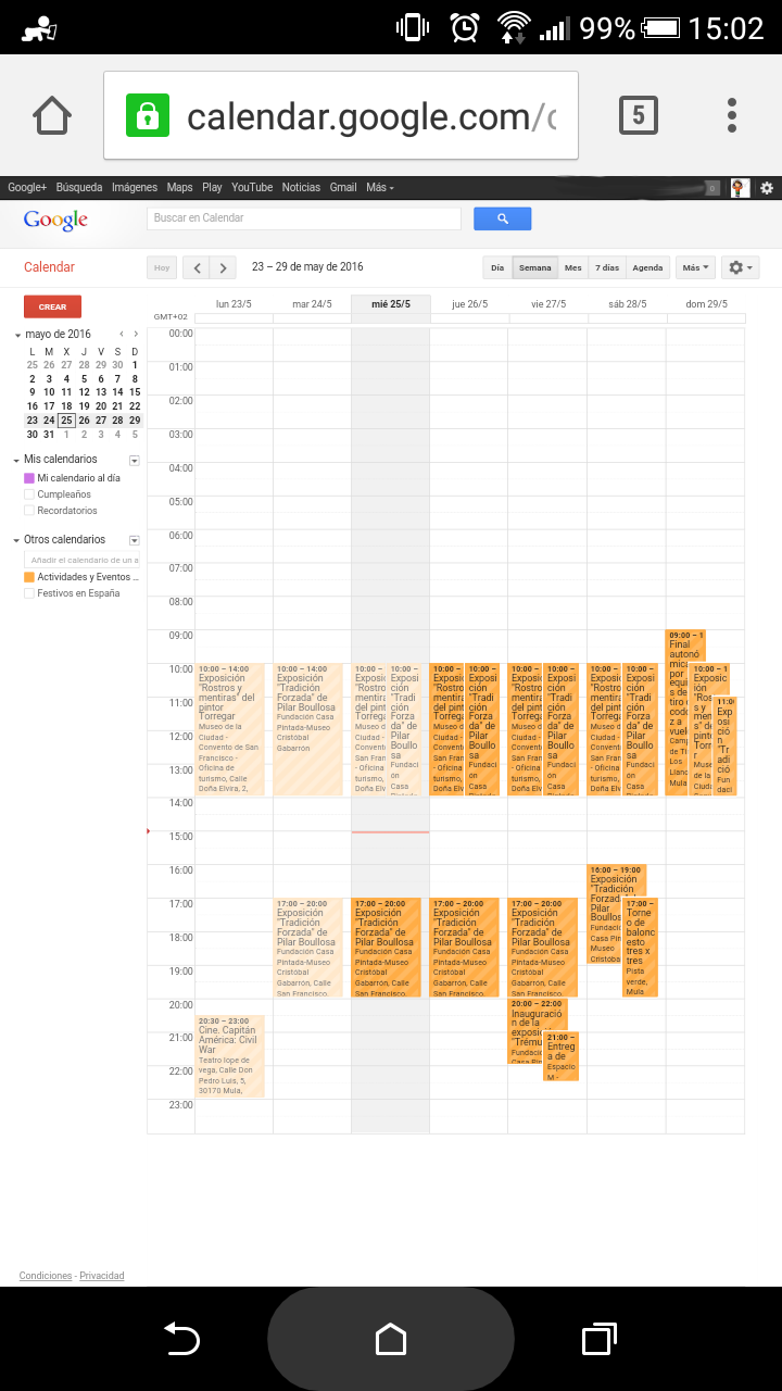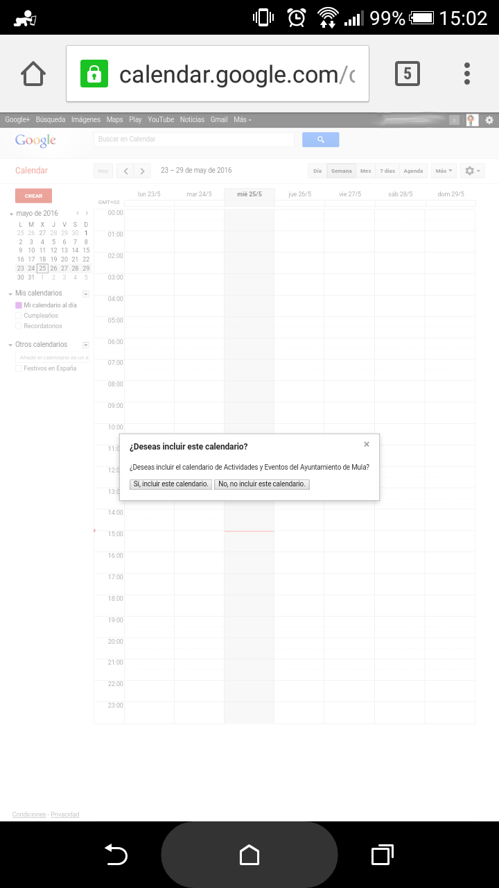 Para suscribirte a la agenda utilizando tu smartphone Android, debes tener una cuenta Google, y a continuación, pinchar aquí o: