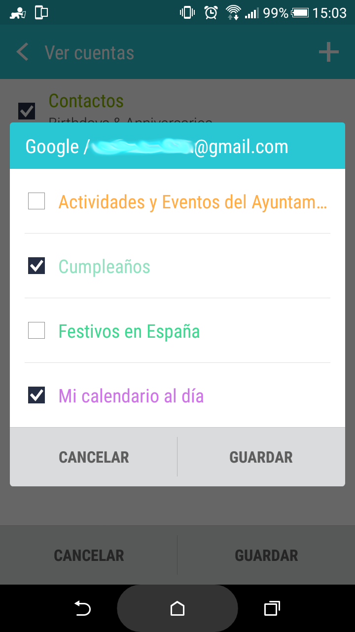 También existe la opción de descargar el app Google Calendar, la cual obtiene automáticamente la información de la cuenta Google asociada al usuario, y mostrará los calendarios asociados a este.