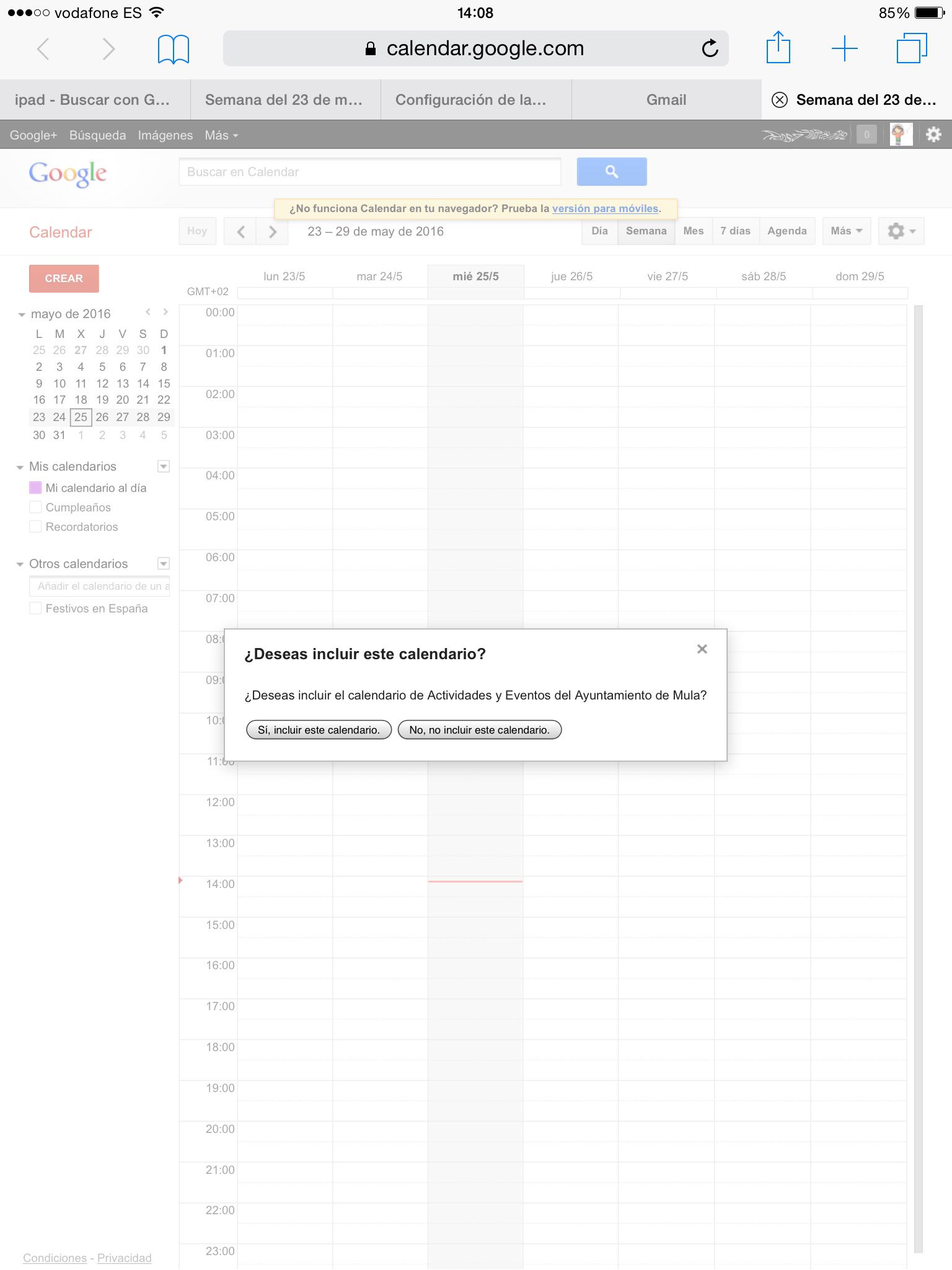 Aparecerá un cuadro de diálogo como el de la imagen siguiente. Donde tendremos que indicar, «Si, incluir este calendario».