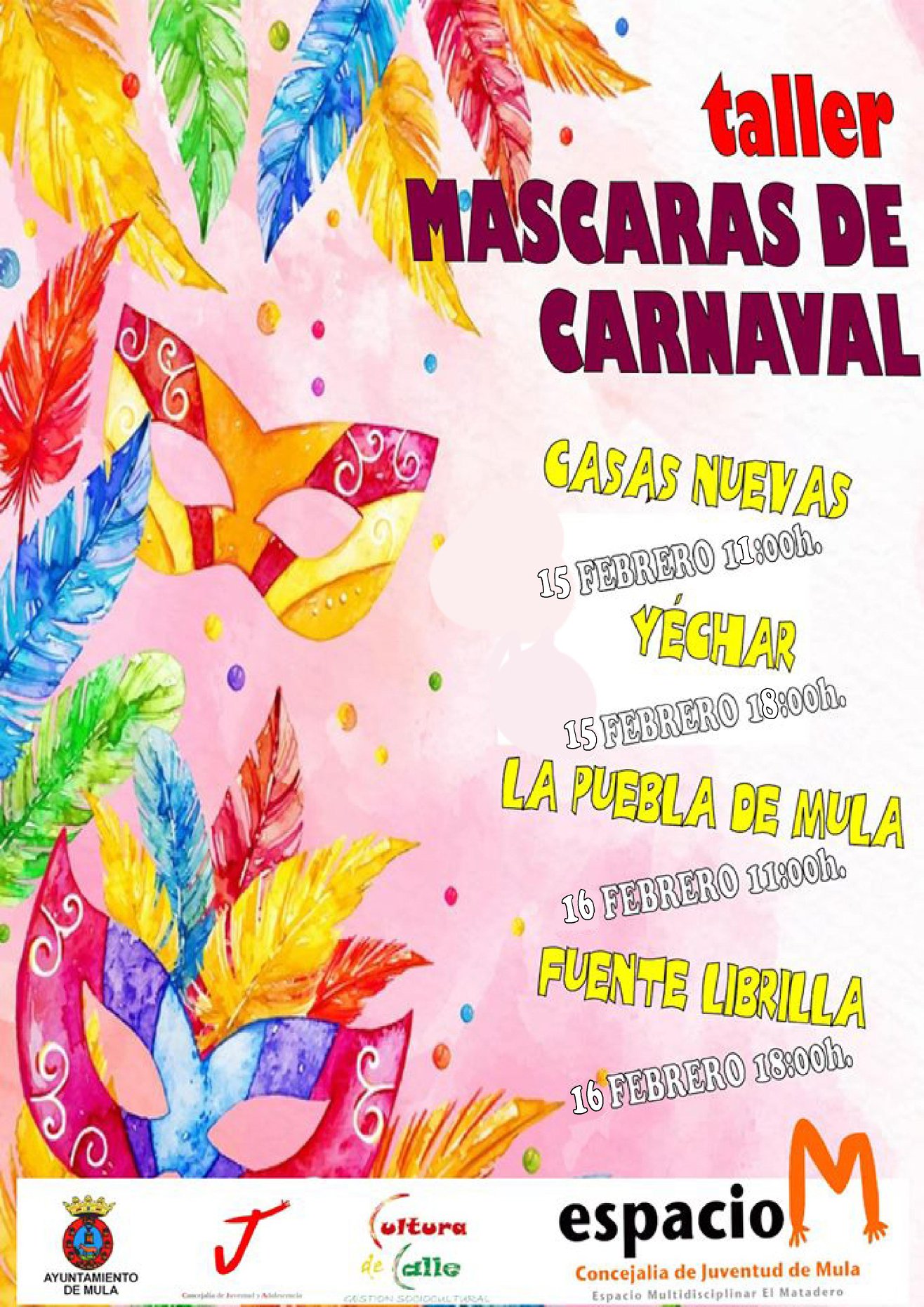 View Larger Image Taller de máscaras de carnaval en Pedanías – 15 y 16 de febrero Comparte esto: Comparte en Facebook (Se abre en una ventana nueva) Facebook Compartir en X (Se abre en una ventana nueva) X Compartir en Telegram (Se abre en una ventana nueva) Telegram Compartir en WhatsApp (Se abre en una ventana nueva) WhatsApp Imprimir (Se abre en una ventana nueva) Imprimir Rosario Martínez2020-02-14T12:45:33+01:00viernes, 14 febrero 2020|juventud y adolescencia, pedanías|