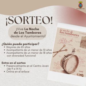 Sorteo de tres plazas para presenciar la Noche de los Tambores desde el Ayuntamiento de Mula