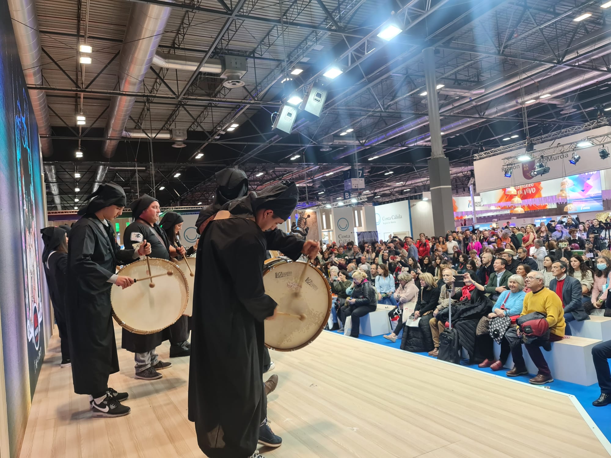 Una delegación de 12 tamboristas de Mula ha estado presente en la Feria Internacional de Turismo (FITUR) recreando La Noche de los Tambores, una fiesta catalogada como Patrimonio Cultural Inmaterial por la UNESCO y de Interés Turístico Internacional.