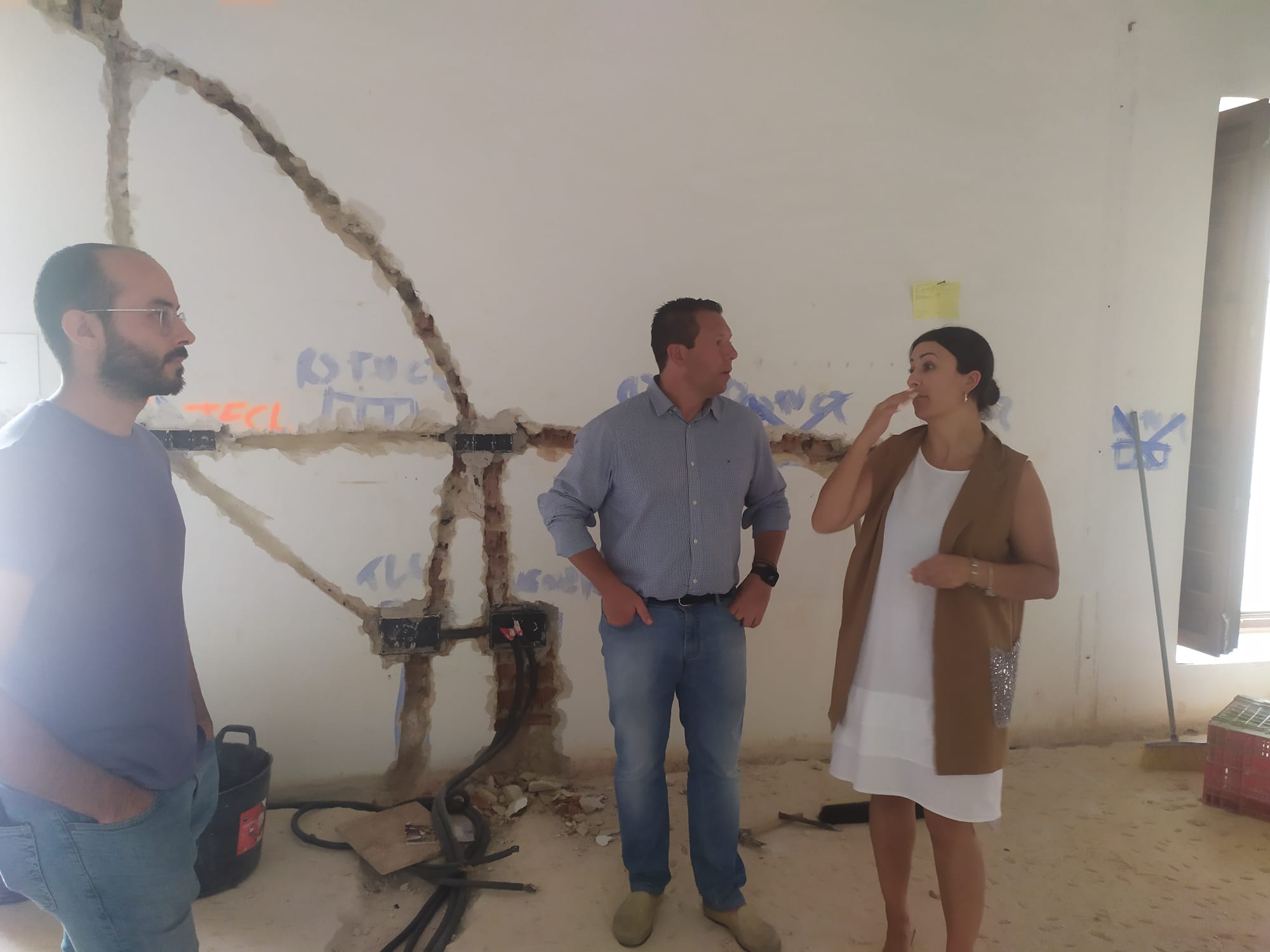 Avanzan a buen ritmo las obras en la Oficina de Turismo de Mula. El alcalde, Juan Jesús Moreno, junto a los concejales Alejandra Martínez y Francisco J. Llamazares han visitado durante la jornada de este martes la actuación de remodelación y mejora que se está desarrollando y que culmina con unas instalaciones modernas, digitales y con una importante red de recursos para dar a conocer toda la oferta del municipio de Mula a los visitantes.