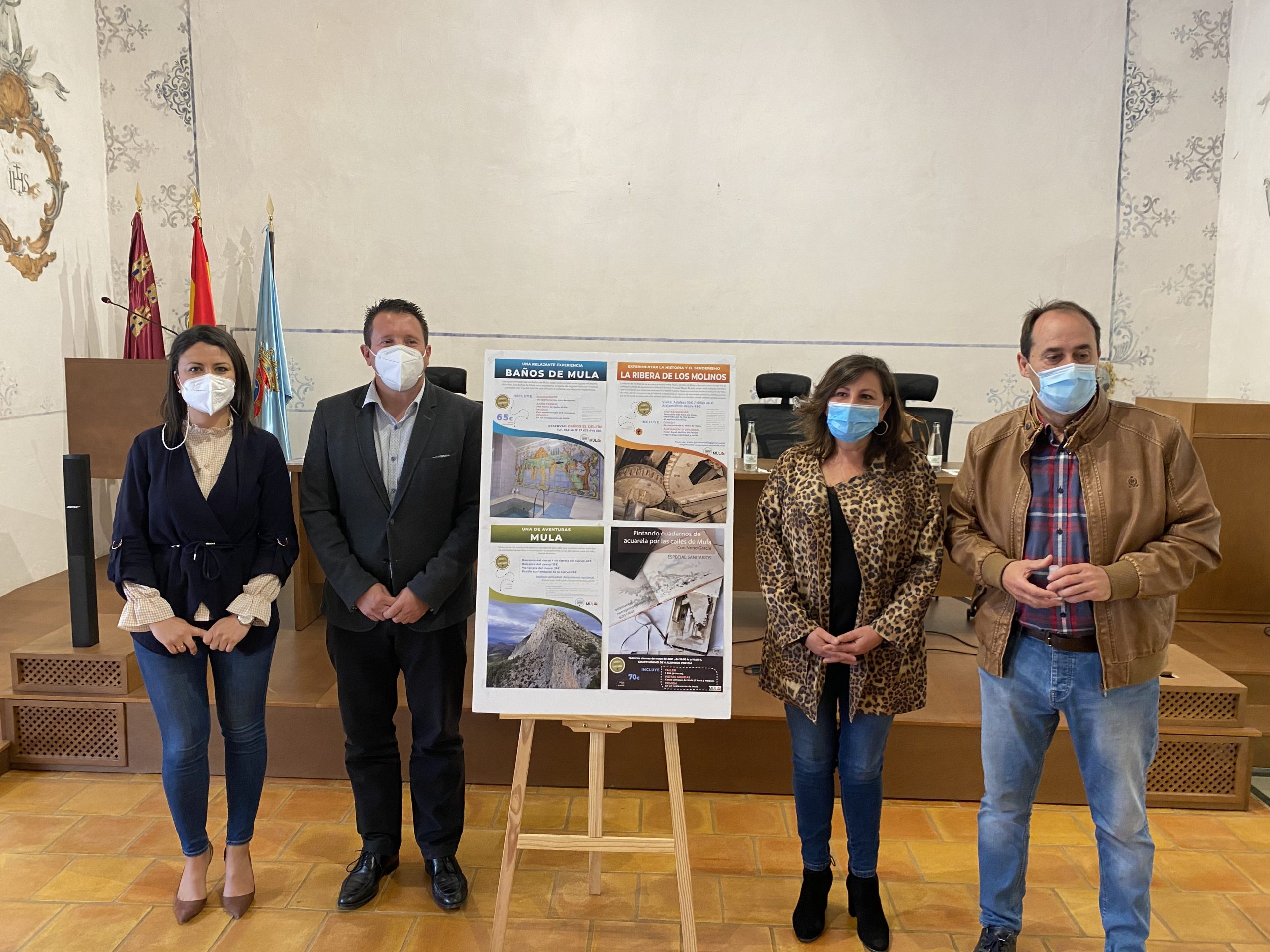 El alcalde de Mula, Juan Jesús Moreno, la concejal de Turismo en el Ayuntamiento de Mula, Alejandra Martínez y la concejal de Sanidad, Antonia Gabarrón, junto al coordinador del programa ‘Cuidamos de ti’, Miguel Hernández, han presentado las distintas ofertas de ocio y tiempo libre que se han diseñado con la participación de diversas empresas del municipio entre las que se encuentran Atrio Turismo y Naturaleza, Hospedería Rural Molino de Felipe, La Casa de los Coy, Baños El Delfín, Restaurante Casa Cristo, Buitre Aventuras o el artista local Nono García, entre otros.