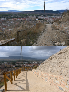 Los trabajos de mejora del entorno han incluido el apuntalamiento de la cimentación del aljibe islámico y el arreglo de la senda. Se ha realizado una mejora del firme, de las barandillas de madera y la salida/evacuación de las aguas del Cabezo. Más adelante, en una segunda fase del proyecto, se ejecutará la restauración y consolidación de la torre situada en la zona oeste del Albacar, se mejorará la señalética de la Senda y se creará la imagen corporativa del Parque Arqueológico.