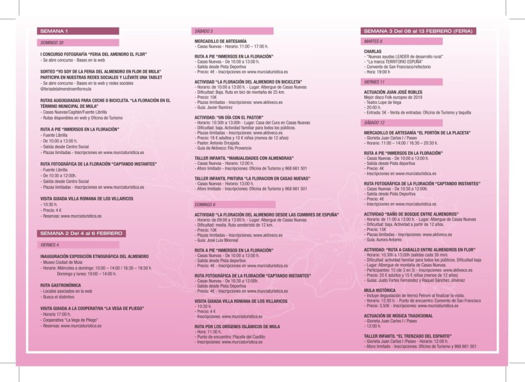 View Larger Image TURISMO | I Feria del Almendro en Flor http://feriadelalmendroenflor.turismodemula.es Programa de actividades Comparte esto: Comparte en Facebook (Se abre en una ventana nueva) Facebook Compartir en X (Se abre en una ventana nueva) X Compartir en Telegram (Se abre en una ventana nueva) Telegram Compartir en WhatsApp (Se abre en una ventana nueva) WhatsApp Imprimir (Se abre en una ventana nueva) Imprimir Rosario Martínez2022-01-31T09:18:25+01:00lunes, 31 enero 2022|Uncategorized|