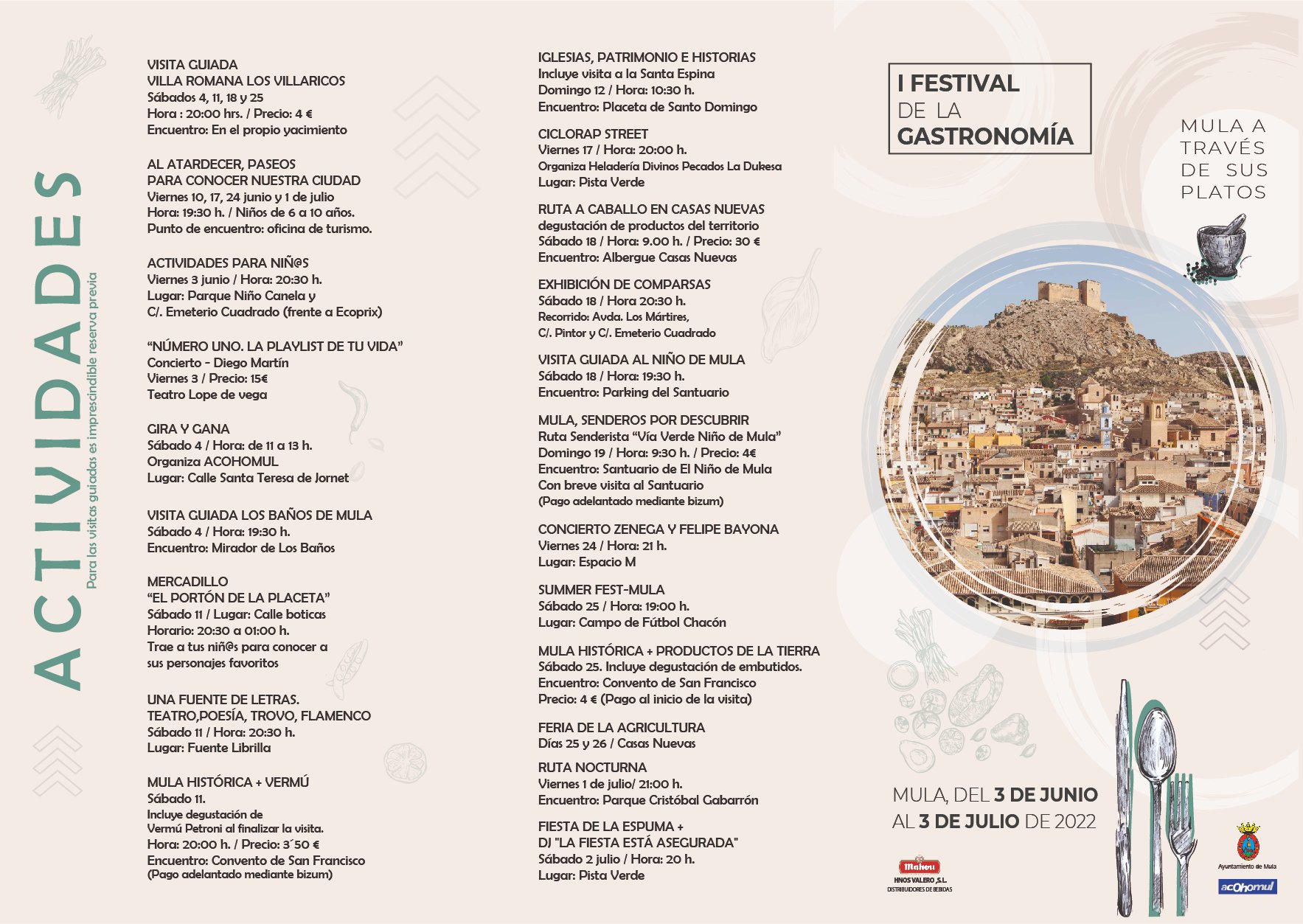 Visitas guiadas, rutas, actuaciones musicales y teatrales, talleres infantiles, mercadillo artesanal, fiesta de la espuma, concursos y muchas más actividades.