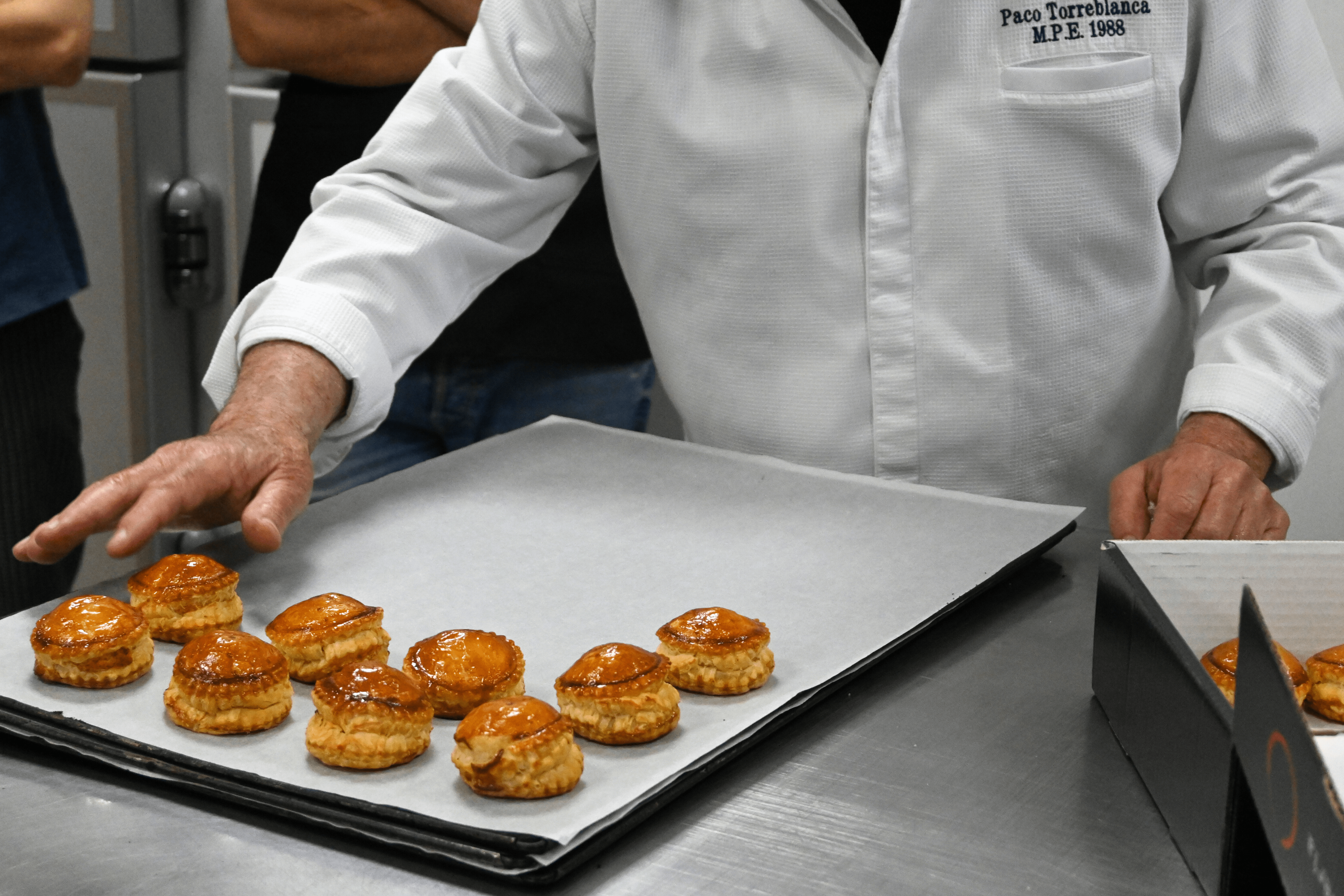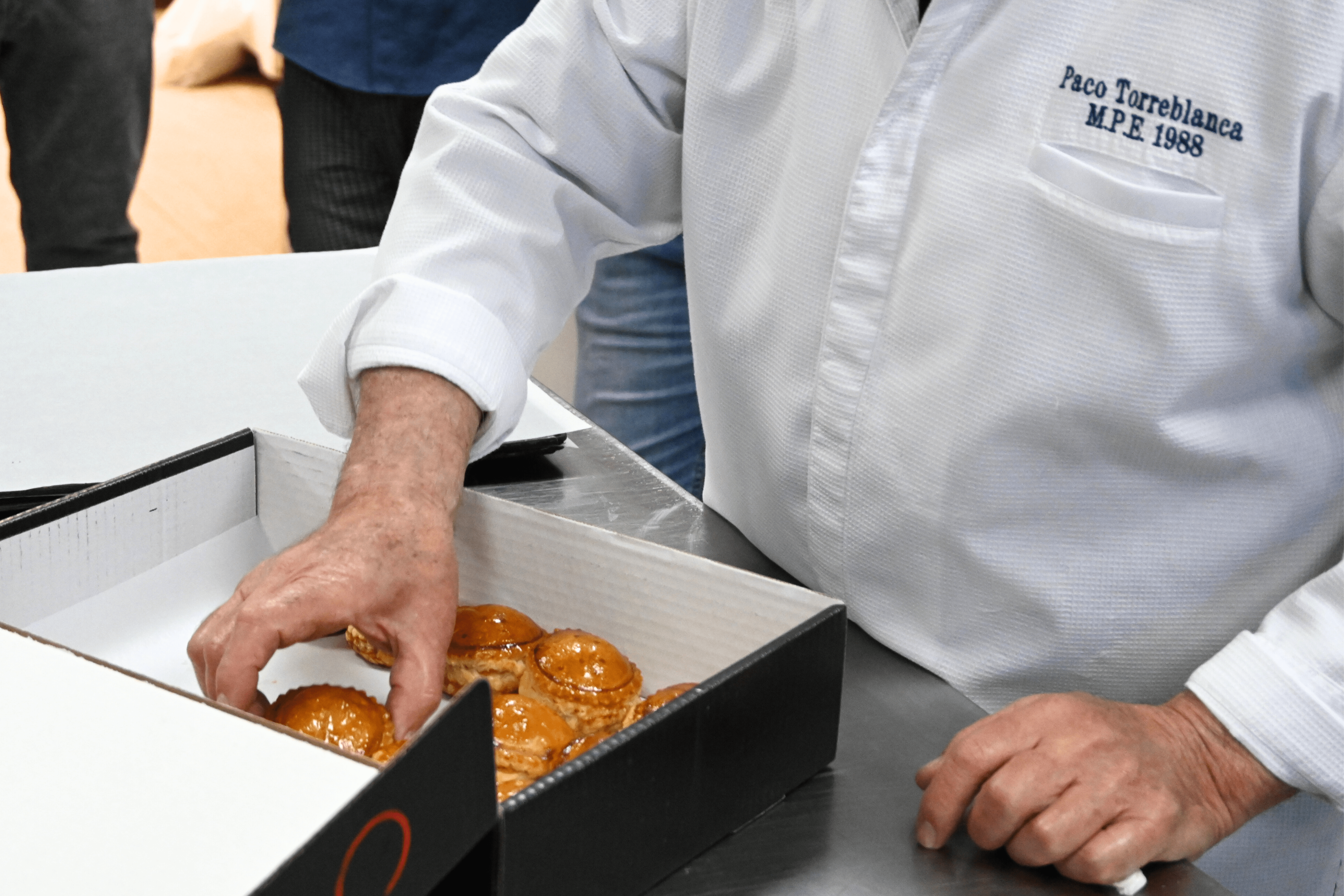 Previamente, Torreblanca y los pasteleros de Mula se han reunido en un obrador de la localidad para darle vida a una primera tanda de los “muleñicos”. Una jornada cargada del aroma y el sabor del fruto más emblemático del corazón de la Región de Murcia entremezclado con otros manjares de la tierra, como la miel y el limón. Una delicia creada para poder saborear la historia, la cultura y la naturaleza de Mula.