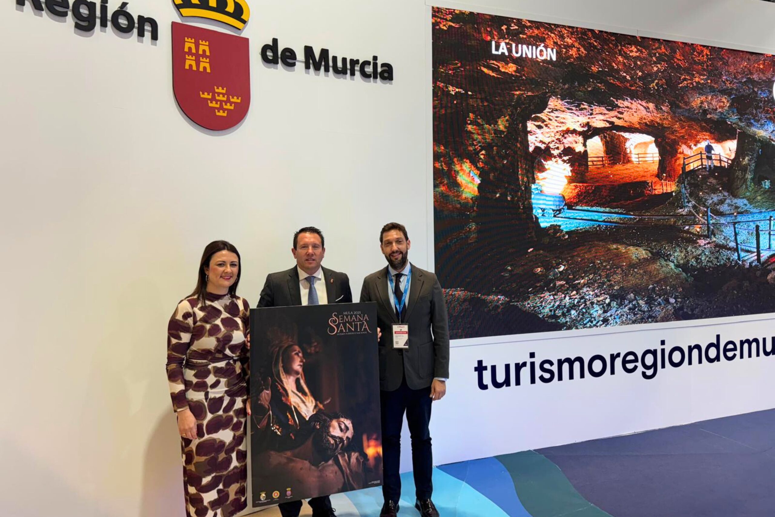 En el marco de la Feria Internacional de Turismo (FITUR), el alcalde de Mula, Juan Jesús Moreno, acompañado por el director general de Turismo, Juan Francisco Martínez, y la concejala de Turismo, Alejandra Martínez, ha presentado hoy los carteles oficiales de la Semana Santa de Mula 2025, declarada Fiesta de Interés Turístico Nacional, y de La Noche de los Tambores, reconocida como Fiesta de Interés Turístico Internacional. Ambos carteles representan dos de las festividades más emblemáticas del municipio.