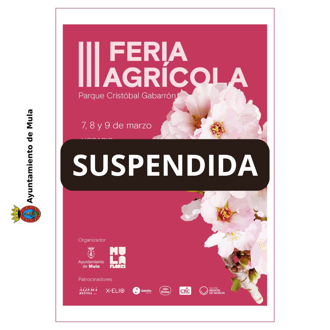 El Ayuntamiento de Mula, tras las conversaciones mantenidas con las empresas participantes y en base a la información facilitada por la AEMET, acuerda la suspensión de la Feria Agrícola prevista para este fin de semana. La previsión meteorológica adversa impide garantizar el correcto desarrollo del evento, por lo que, en consenso con los agentes implicados, se ha tomado la decisión de cancelar la edición de este año.