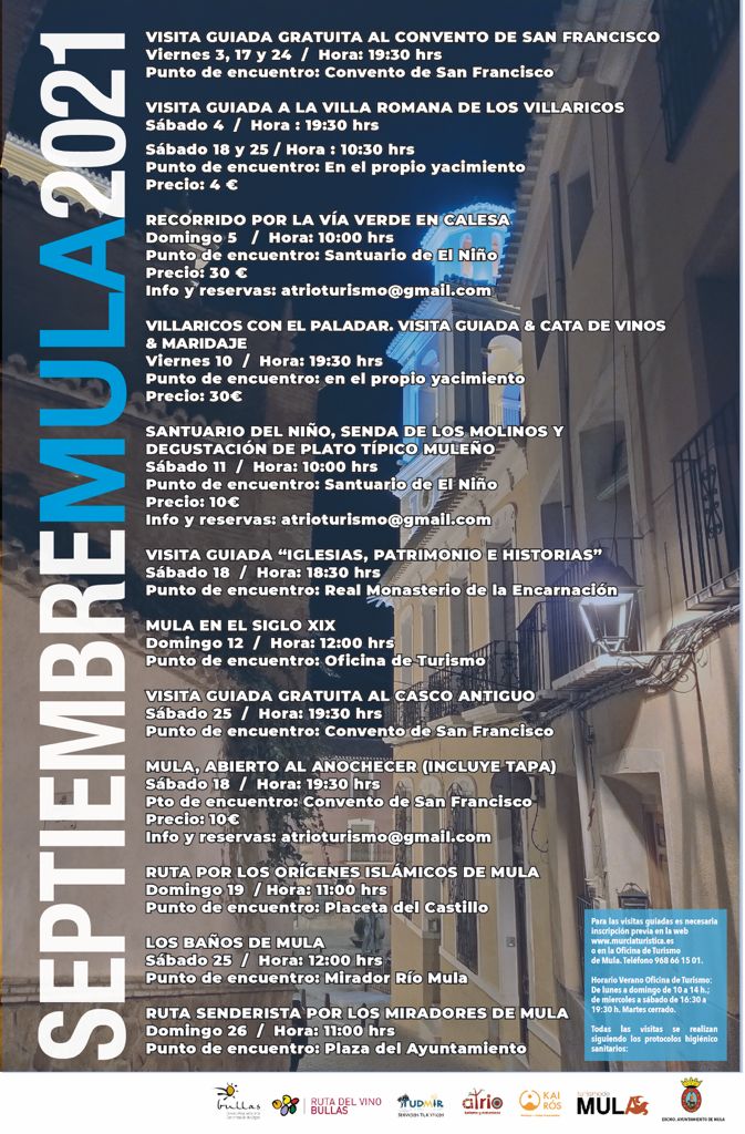 Es por este motivo por el que la concejalía de Turismo organiza para el mes de septiembre multitud de propuestas y visitas guiadas para seguir conociendo Mula y sus recursos.
