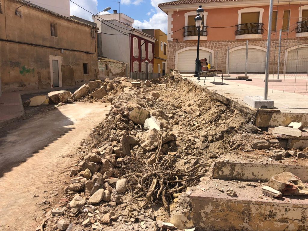 La concejalía de Urbanismo y Obras Públicas está llevando a cabo la construcción y adecuación de un nuevo muro de contención en la Plaza de la Iglesia de la pedanía de Fuente Librilla.