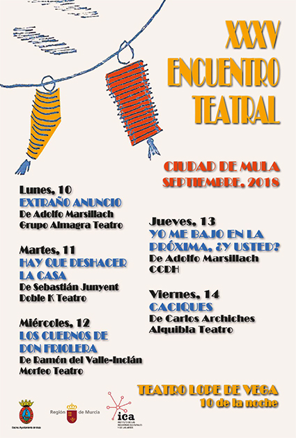 View Larger Image XXXV Encuentro Teatral «Ciudad de Mula» Comparte esto: Comparte en Facebook (Se abre en una ventana nueva) Facebook Compartir en X (Se abre en una ventana nueva) X Compartir en Telegram (Se abre en una ventana nueva) Telegram Compartir en WhatsApp (Se abre en una ventana nueva) WhatsApp Imprimir (Se abre en una ventana nueva) Imprimir Rosario Martínez2018-09-04T09:13:27+02:00martes, 4 septiembre 2018|cultura|